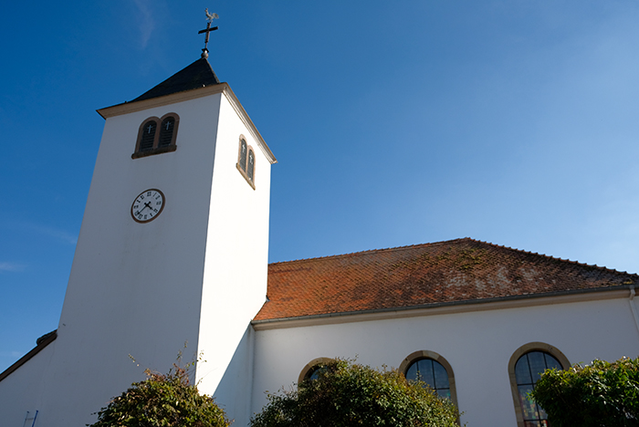 先日、久しぶりに友人とドライブに出かけました。いつものように目的地は決めずに出発しましたが、とりあえず、山に行くか、水辺に行くか、街に行くか考えて、水辺に行くことにしました。水辺といえばザール川、モーゼル川が思い浮かびますが、友人曰く、ザールブリュッケンをそのまま南に行くといくつか湖があってその辺りが綺麗だということで南に向かって出発しました。途中、アウトバーンを走ることも考えましたが、目的地があるわけではないので、のんびりと走っていくことに。というわけでフランスに行きました。とりあえず大きな湖があって、その側にある街か村をカーナビに入れて出発です。1時間もしないうちに小さな村に到着しましたが、お店がありません。湖のそばまで行くと教会があったので中に入ってみました。