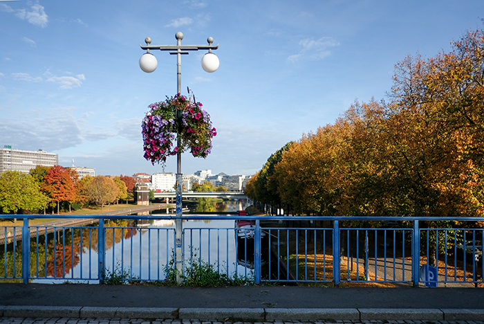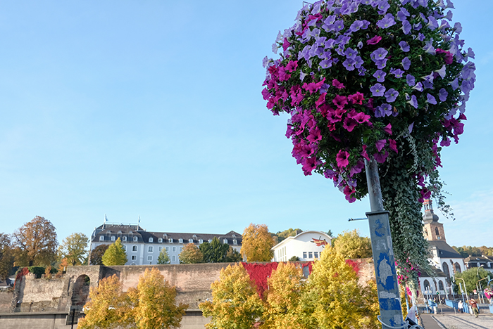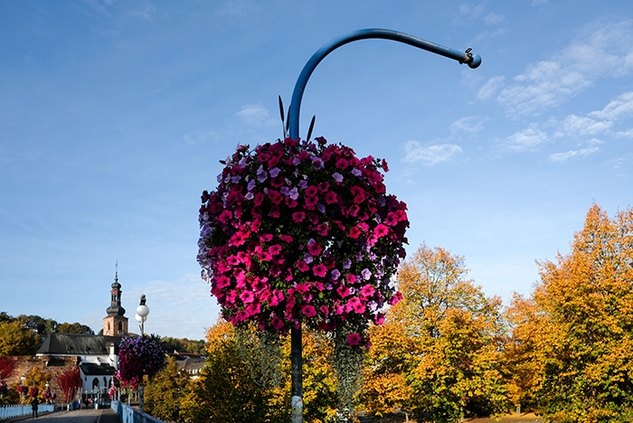 ザールブリュッケンの街角 秋晴れ by ey 2018年10月13日 最高気温が24度となっていますが、天気が良いからか、体感的にはそれ以上に感じられます。秋晴れの一日。飾られている花や色づいてきた葉っぱ、そして優しい青空、それらのコントラストが美しいです。