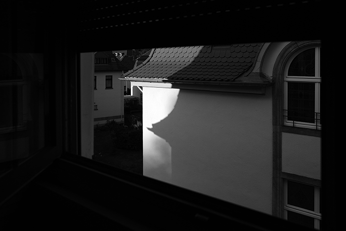 ザールブリュッケンの街角 影 by ey 2018年10月17日 白壁に映る屋根の影がまるで日本のお城の天守閣の影のようにも見えました。実際に天守閣の影ならばもっと大きく屋根が広がっていると思いますが、この影を見て大天守を想像しました。