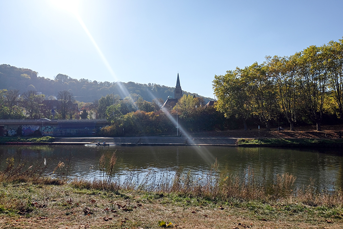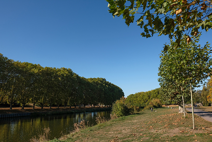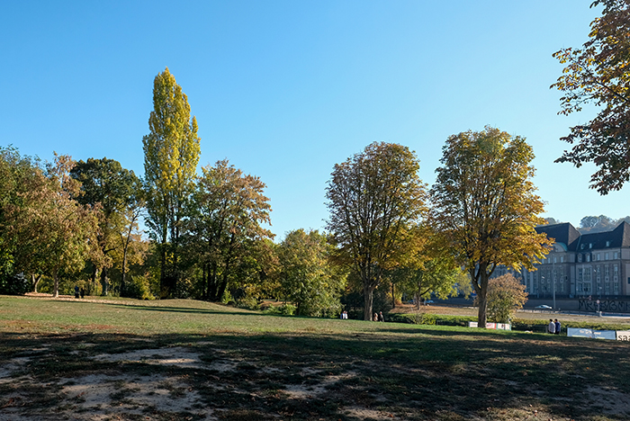 ザールブリュッケンの街角 散歩日和 by ey 2018年10月21日 日中の気温は13度と少し肌寒いものの天気が良いので絶好の散歩日和の一日でした。外出先からの帰りに撮影したものです。散歩している人、公園でくつろいでいる人、ビールなどの飲み物のスタンドに並ぶ人、各々の午後がそこにはありました。