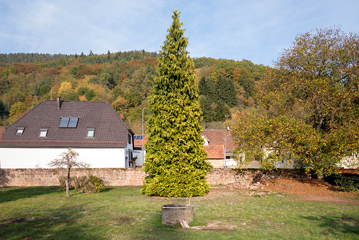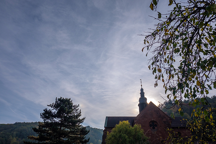先日、友人とドライブしました。目的地を考えるときに、どこか紅葉の綺麗な場所に行こう!となり、高低差のある谷などが良いのでは、となりました。そこで友人が良く知っている谷的な村に行くことに。ザールラント州の隣の州ラインラント=プファルツ州にあるオイサータールという小さな村です。音楽家の友人はそこにある教会で何度か演奏しているので、その谷にある教会を目指して行きました。車で2時間もかからずに到着。