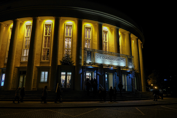 ザールラント州立劇場に行きました。エメリッヒ・カールマン作曲「チャルダッシュ侯爵夫人」(1915年ウィーン初演)です。「チャールダーシュの女王」というタイトルの方が一般的かもしれません。夜の気温は1度、体感温度は-4度になっていました。冷たい風が吹く、しかも平日の夜なので満員の観客というわけではありませんでしたが、それでも盛り上がりの感じられる公演でした。
