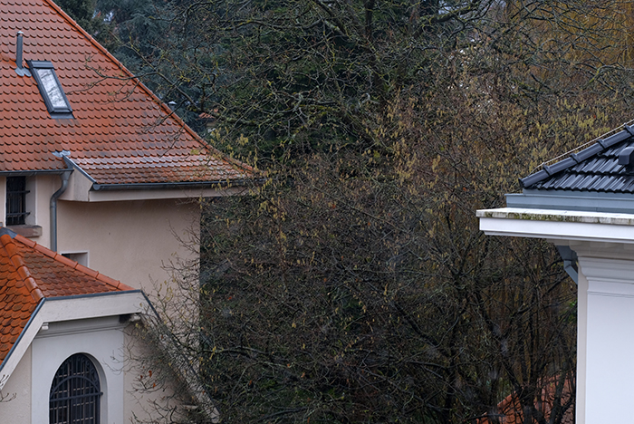 ザールブリュッケンの街角 雨風 by ey 2019年1月28日 今日は雨や雪、みぞれが強く降った一日でした。雨などが強いというよりは、強い風に流されたり、押されたりといった印象です。写真を撮ったときは細かい雪が降っていましたが写真にはほとんど写っていないように見えます。