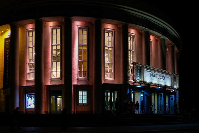 ザールラント州立劇場に行きました。ヴェルディ作曲「ナブッコ」で、今日が再演初日です。ヴェルディだからか、ナブッコだからか分かりませんがチケットは完売になっています。これぞオペラ!といった感じで今日は観られて良かった公演でした。カーテンコール時には観客も立ち上がって拍手するなど盛り上がりました。公演としては良かったところ、残念なところがありましたが、それも人間味といえるかもしれません。まさしく舞台が生きているといった感じです。ただネットの方の配役表の一部が昨シーズンのコピー貼り付けになっているようで、それは手抜きにも見えました。