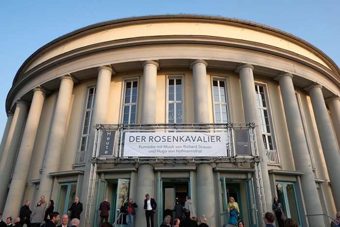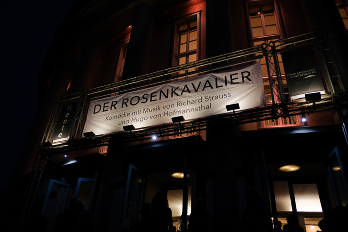 ザールラント州立劇場に行きました。今日がプレミエのリヒャルト・シュトラウス(1864-1949)作曲「ばらの騎士」(1910年作曲)です。個人的に、最も好きなオペラの一つで、是非観たい演目でした。開演前はまだ青空がありますが、2度の休憩がある約4時間以上の演目で開演時間がいつもより1時間半早くなっています。いつもは午後7時半から、今日は午後6時からです。