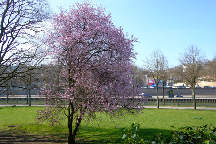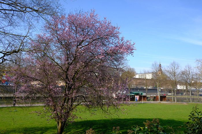 街中にある白色の桜は既に咲いていますが、ピンク色の桜はまだまだといった感じです。青空との共演、これからが楽しみです。