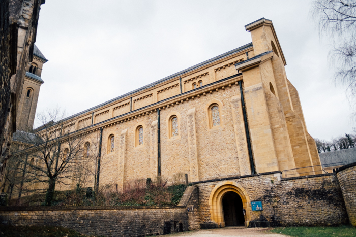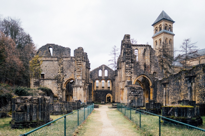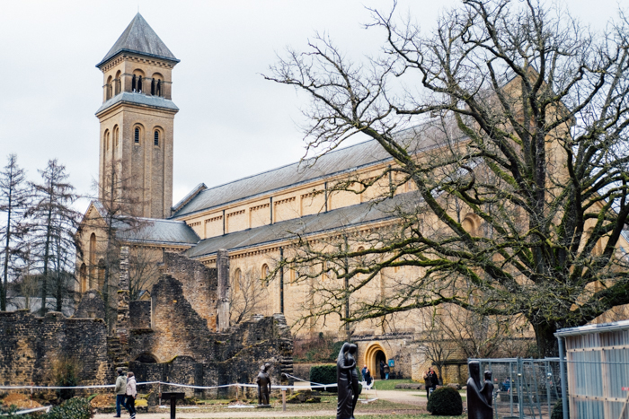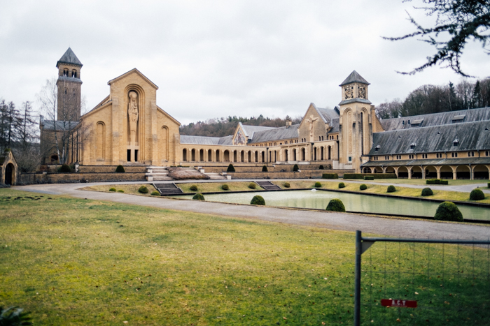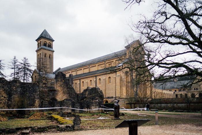 ベルギーのオルヴァル修道院に着きました。整備された駐車場に車を止めて、中に入りました。入口でチケットを購入します。すれ違う人の多くが箱を抱えていきます。お土産か何かを購入したのかもしれません。チケットを購入して中に入りますが、修道院の建物は現在も使用されているので、中に入ることができません。また敷地内にも入れません。入口を過ぎたあたりにある窓から覗くようになっていますが、広い土地に大きな建物があって、かなりの力があるのが分かります。教会正面のマリア像は17mあるということ。