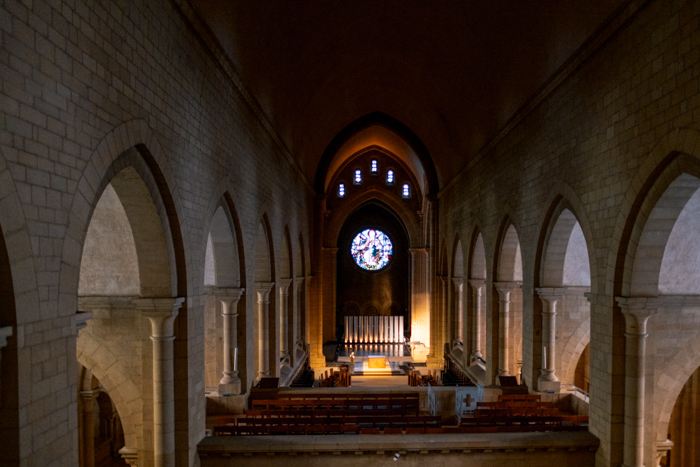 途中に階段があり、上まで登るとパイプオルガンの場所から礼拝堂が見られるようになっています。礼拝堂には入れません。