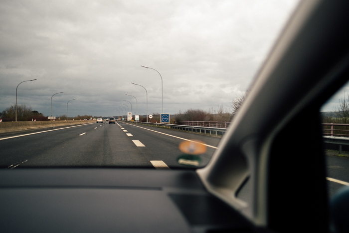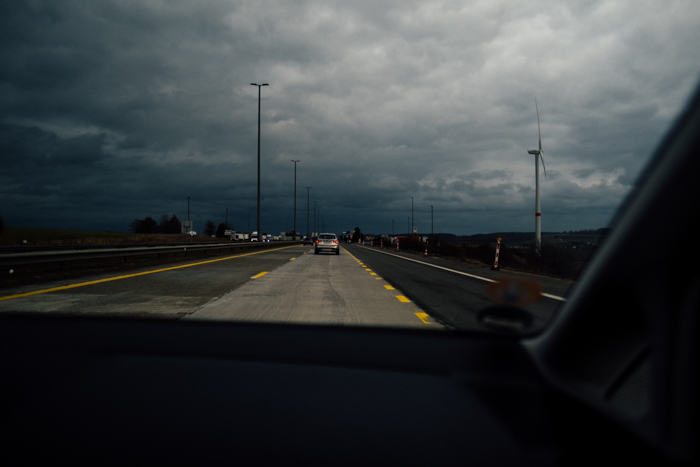 アウトバーンまでは最初と違う道で行きましたが、途中、何か所も道路の状態が良くない場所がありました。大きな穴がいくつも開いています。この写真の場所はそうではありません。並木が綺麗だったので撮りました。