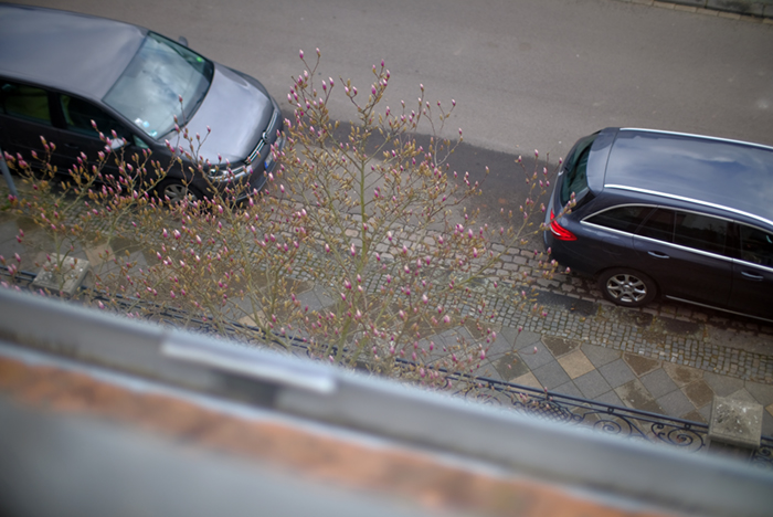 午前中は霧雨が降っていました。窓から下を覗くと、庭にあるモクレンが色づいているのが分かりました。春が近づいているのが感じられます。
