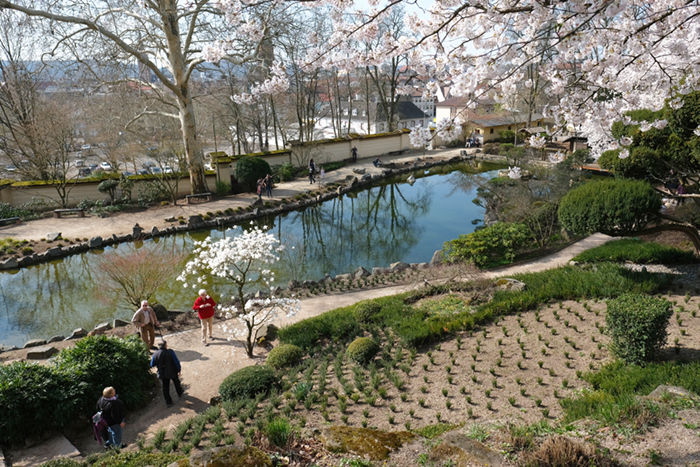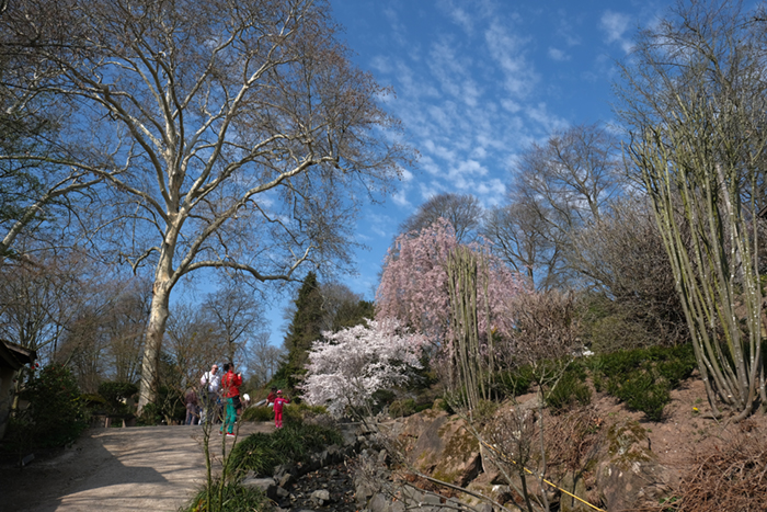 先の日曜日にカイザースラウテルンの日本庭園に行った時の写真です。ザールブリュッケンからは車で約1時間。午前10時に出発するか、11時にするか考えましたが、お昼に混むのを予想して早めに出ることにしました。午前10時出発です。そして思ったよりも早くに日本庭園に到着しましたが、混んでいると思われた駐車場もガラガラです。前日までは冬時間で、日曜日の午前10時は昨日までは午前9時でした。夏時間に変わった日曜日の朝はゆっくりしたい人が多いのかもしれません。日本庭園も空いています。そして濃い青空と綺麗な桜、非常に良いタイミングでした。