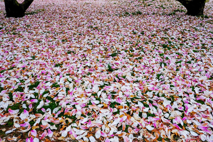 先日まで綺麗に咲き誇っていたモクレンですが、落ちても美しさがあります。小雨に濡れていたこともあって、潤いのある風景になりました。