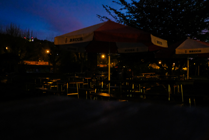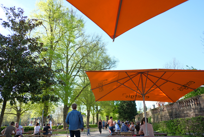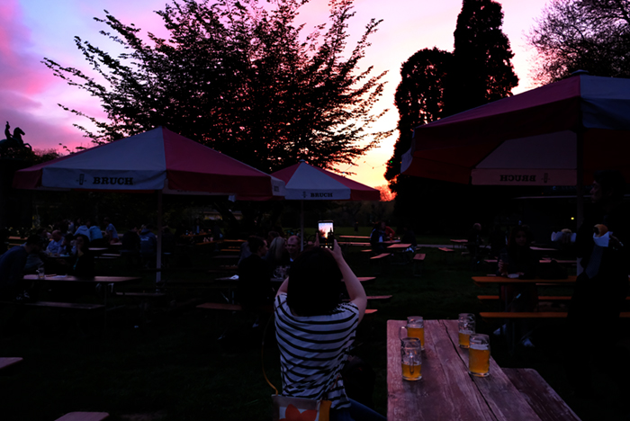 ここ最近では最も気温が高く、24度まで上がりましたが、日差しもあって体感温度はもっと暑く感じられました。夕方、友人から連絡があり、近所のビアガーデンにいくことに。今の季節は緑がまだ柔らかいです。