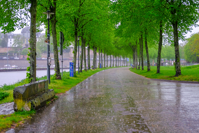 雨で緑は綺麗になっていますが、他に人は歩いていません。