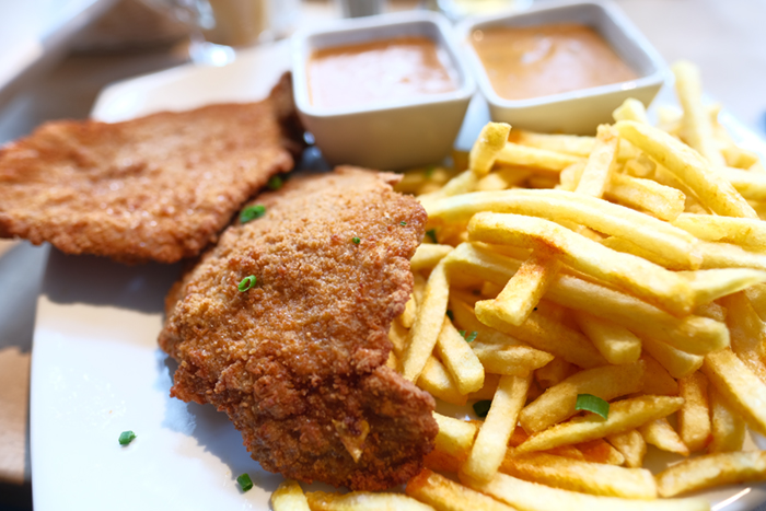 2種類のソースの付いたシュニッツェル(カツレツ)を注文しました。想像以上のボリュームです。味も悪くなく、また料金も手ごろで、このお店は当たりでした。今後、カイザースラウテルンを訪れるときは、このお店で食事をすると思います。ただ店内でタバコを吸っている人がいました。大きく窓が開いていたので、ほとんど問題はありませんでしたが、窓を閉め切る冬は状況が変わるかもしれません。いずれにしても美味しいお店でした。