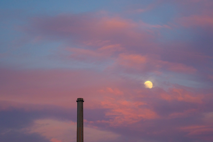 ザールブリュッケンの街角 夕方から夜へ by ey 2019年5月17日 午後9時過ぎに撮影した空です。夕焼け空が残り、ほぼ満月に近い月が光っています。こういった間の時間は独特な雰囲気があるのでずっと眺めていたくなります。
