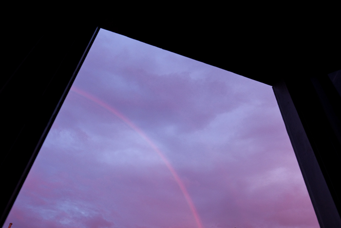 雨の上がった午後9時半ごろ、空に大きな虹が見えました。何か良いことがありそうです。