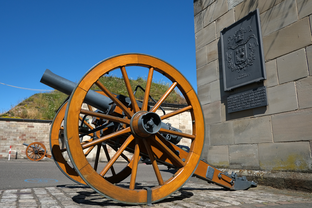 ザールルイの街に入ります。街の入り口には大砲があります。