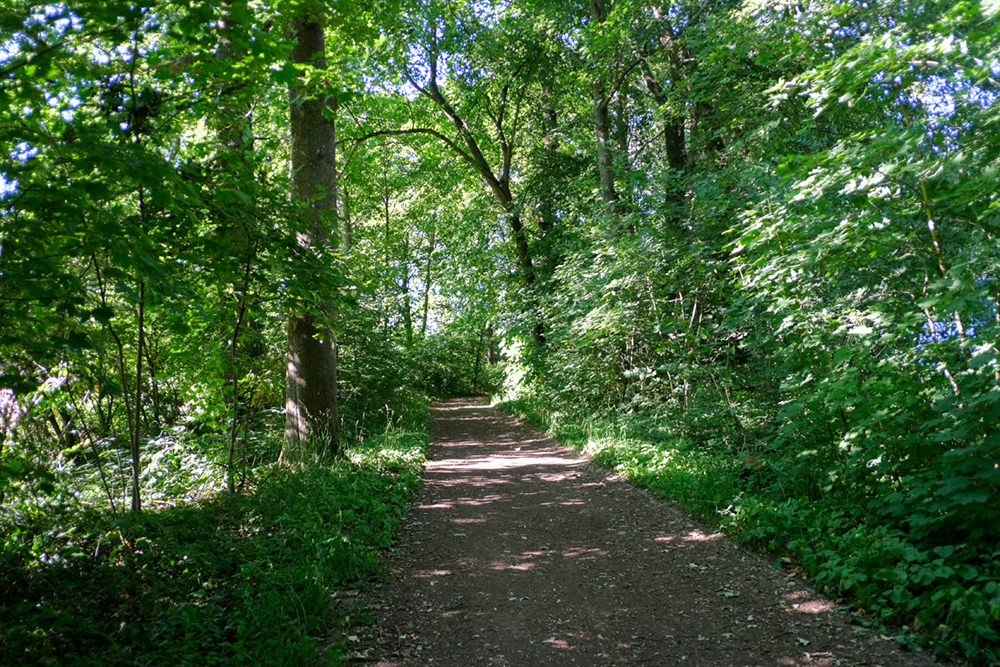 駅までの帰りは森の中を通っていくことに。日陰ですが気温が高いので思った以上に暑さがあります。