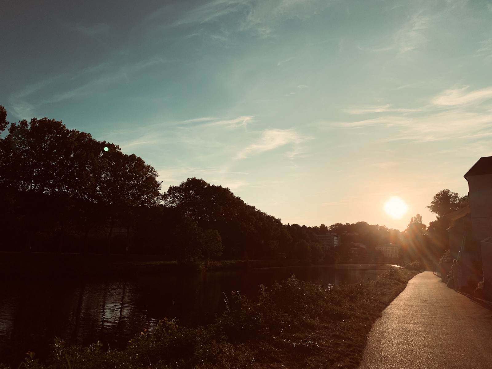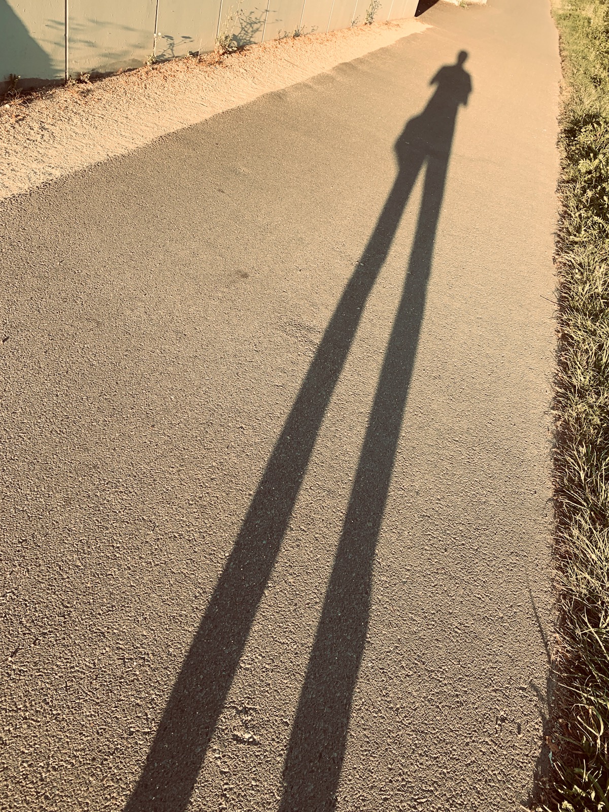 午後7時頃の空です。気温24度で非常に快適です。夕焼けの光が眩しく、影が長く柔らかくなっています。秋の気配が感じられます。