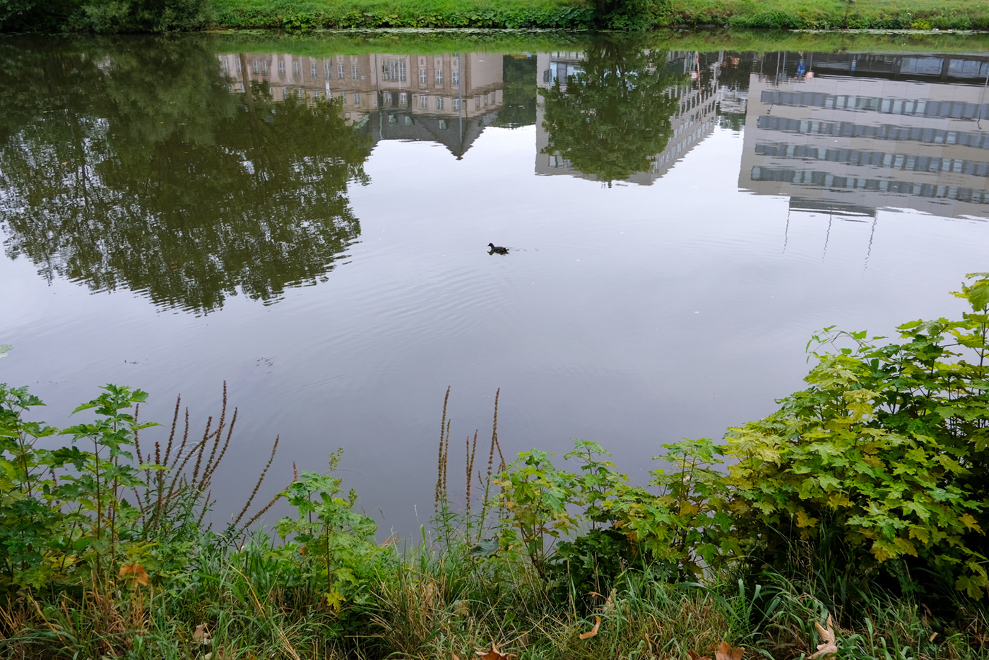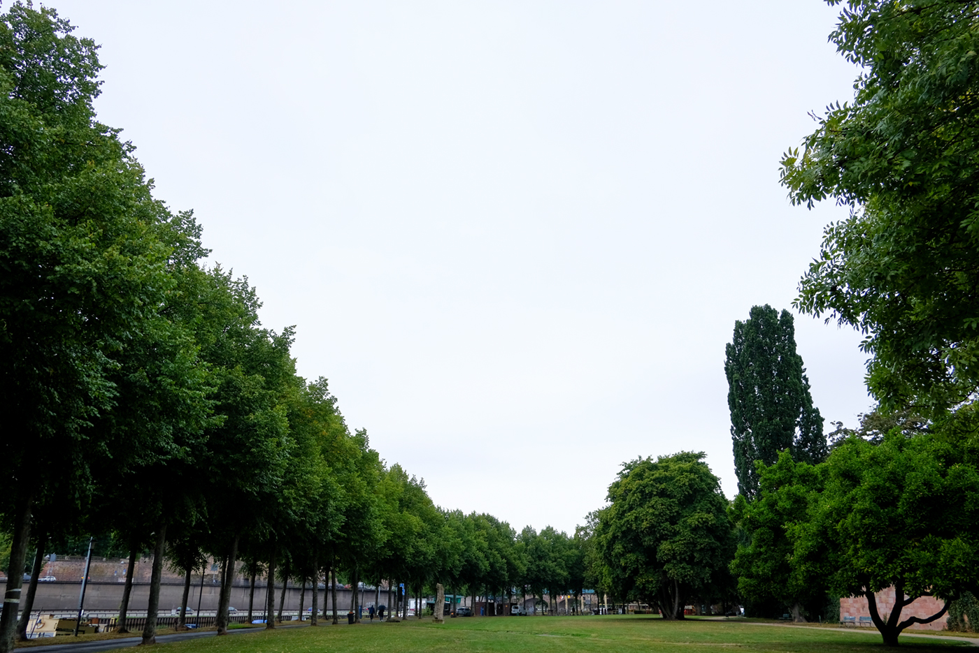 ザールブリュッケンの街角 雨の合間 by ey 2019年9月7日 今日は雨音で目が覚めました。気温は11度と突然寒くなりました。午前中、外出先からの帰りに撮りましたが、出かけたとき、帰るときとタイミングよく、その時だけ雨が降っていませんでした。雨に濡れた風景は落ち着いており、雨の匂いが残っています。