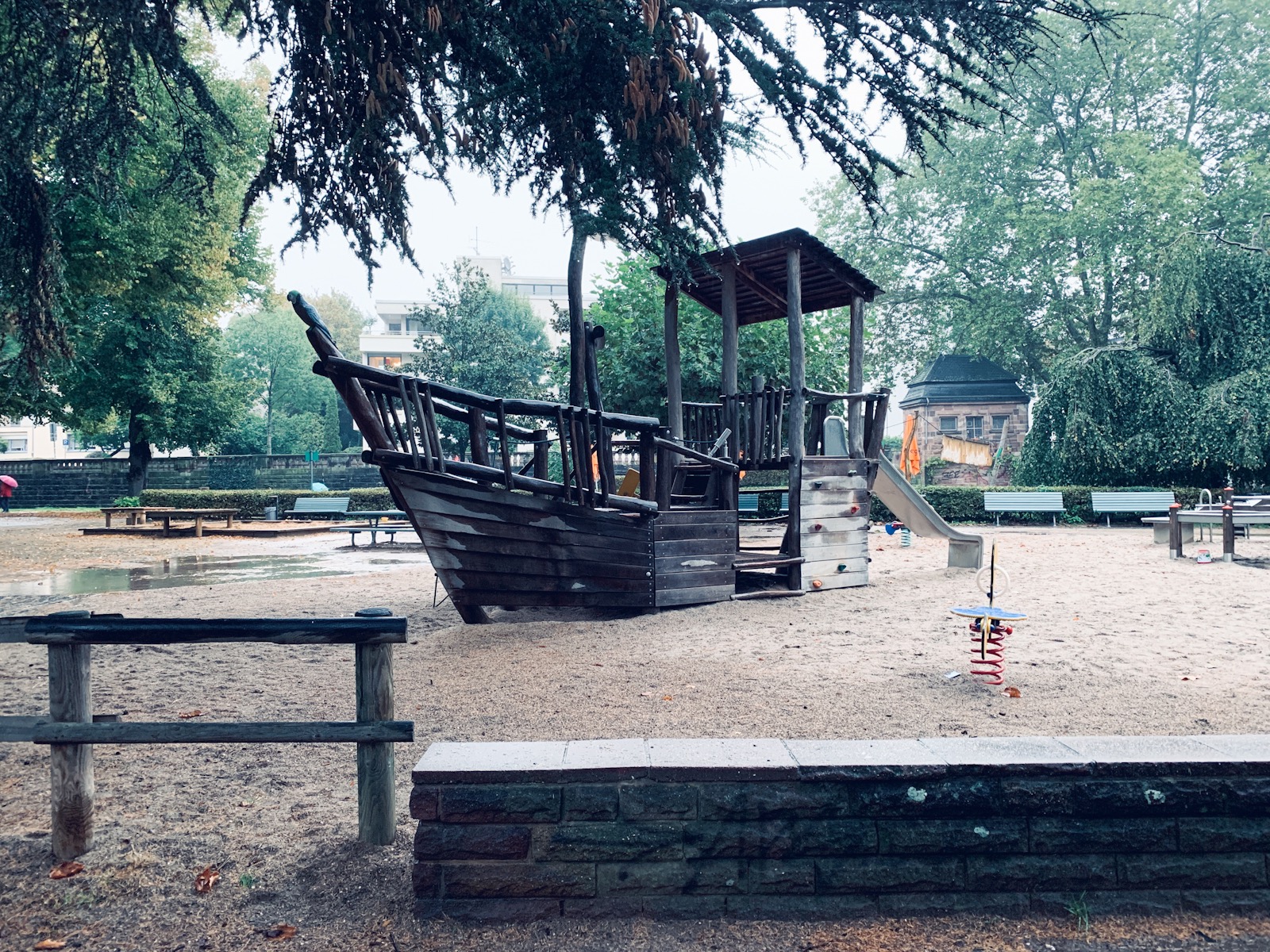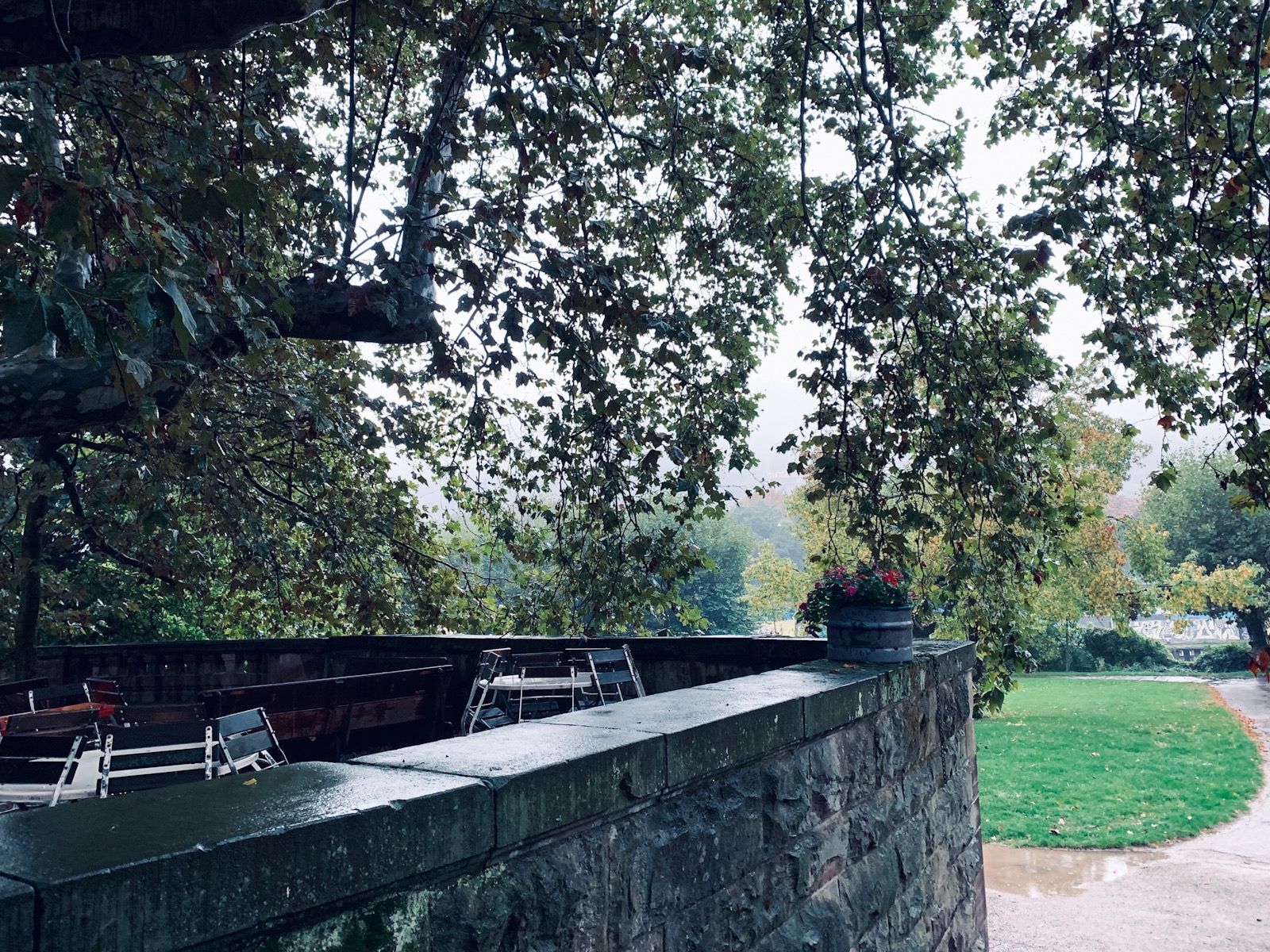 ザールブリュッケンの街角 雨続き by ey 2019年10月8日 ここ最近、雨の日が続いていますが、今日も冷たい雨が降っています。秋の雨です。近所の公園で遊ぶ人は誰もいなくて、ビアガーデンも閉まっています。