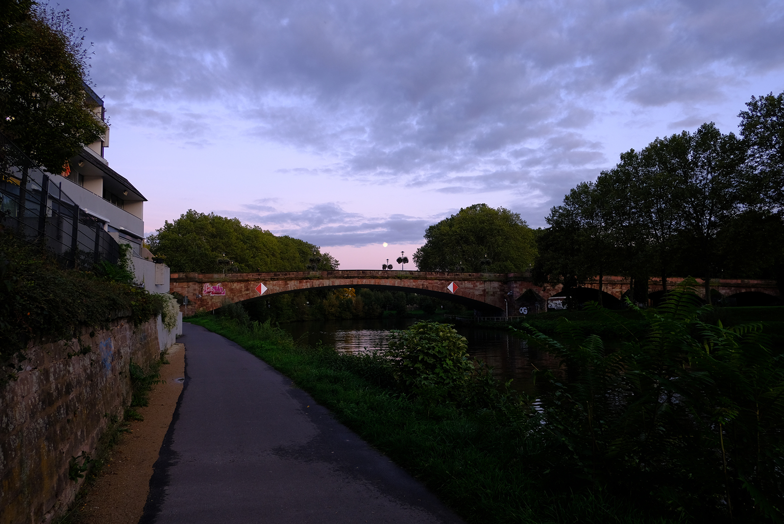 今日は満月です。少し前に撮影した一枚ですが、遠くに見えるほぼ丸い月が印象的です。