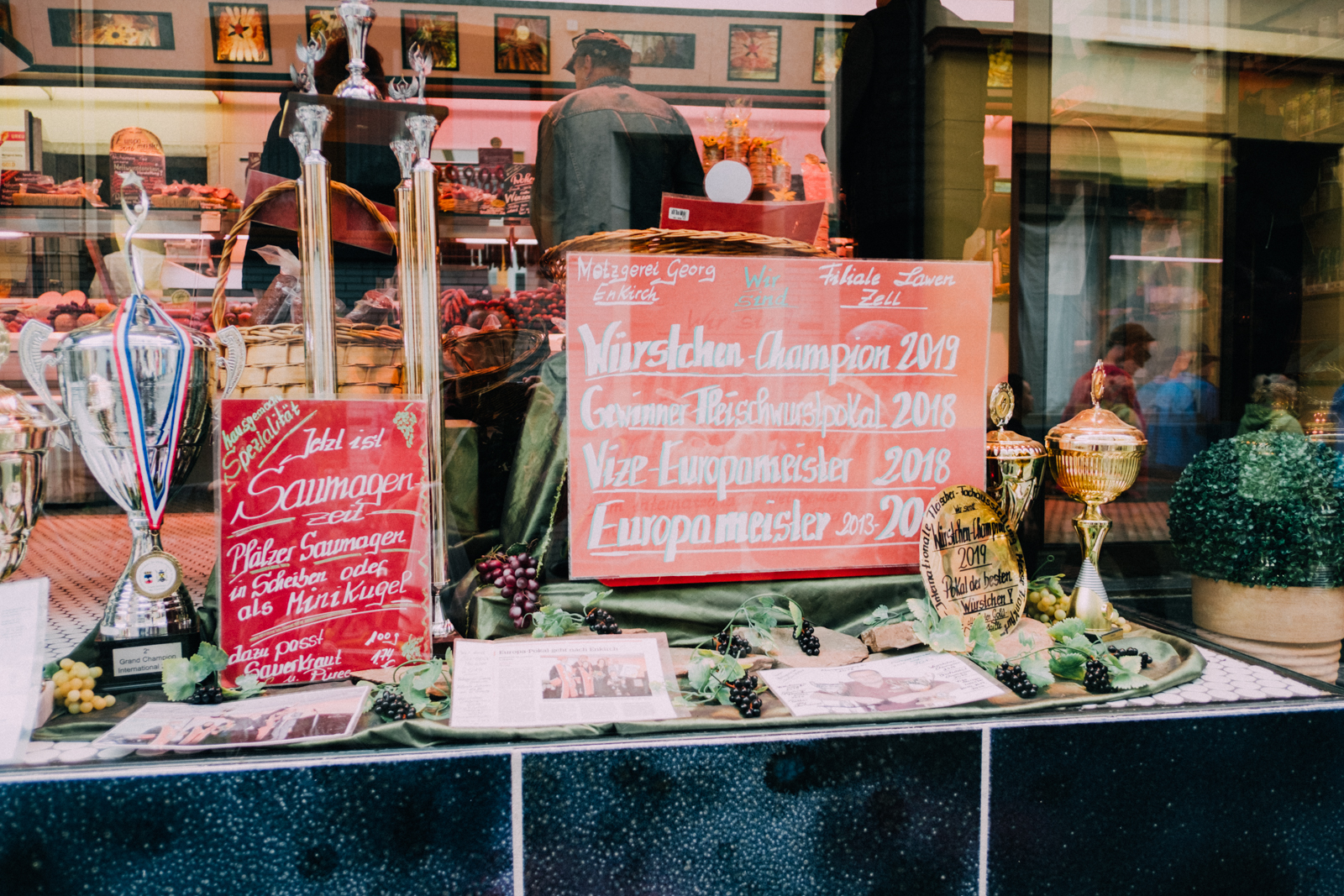 街中に賑わっている肉屋がありました。外にはヨーロッパチャンピオンの文字が見えます。せっかくなので賞を取ったというサラミを2本購入しました。