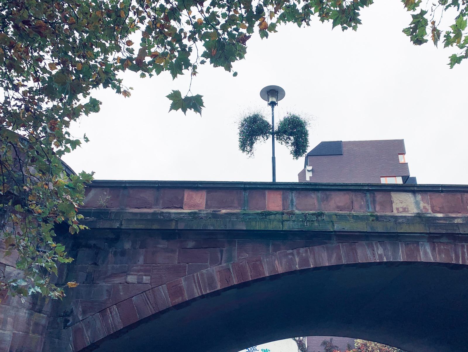 午前中、外出先からの帰りに撮りました。街灯に飾られていた花の撤去作業がなされています。
