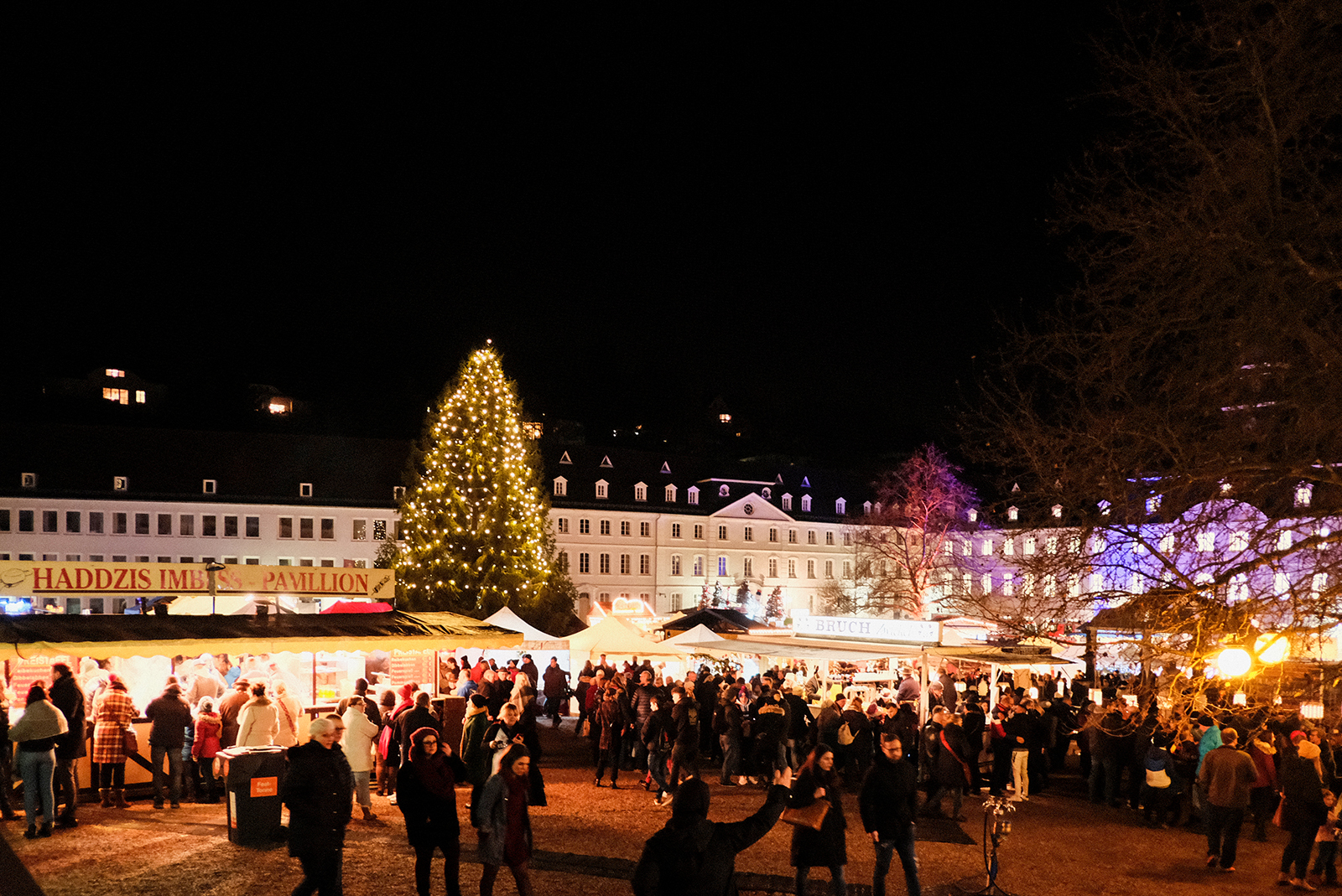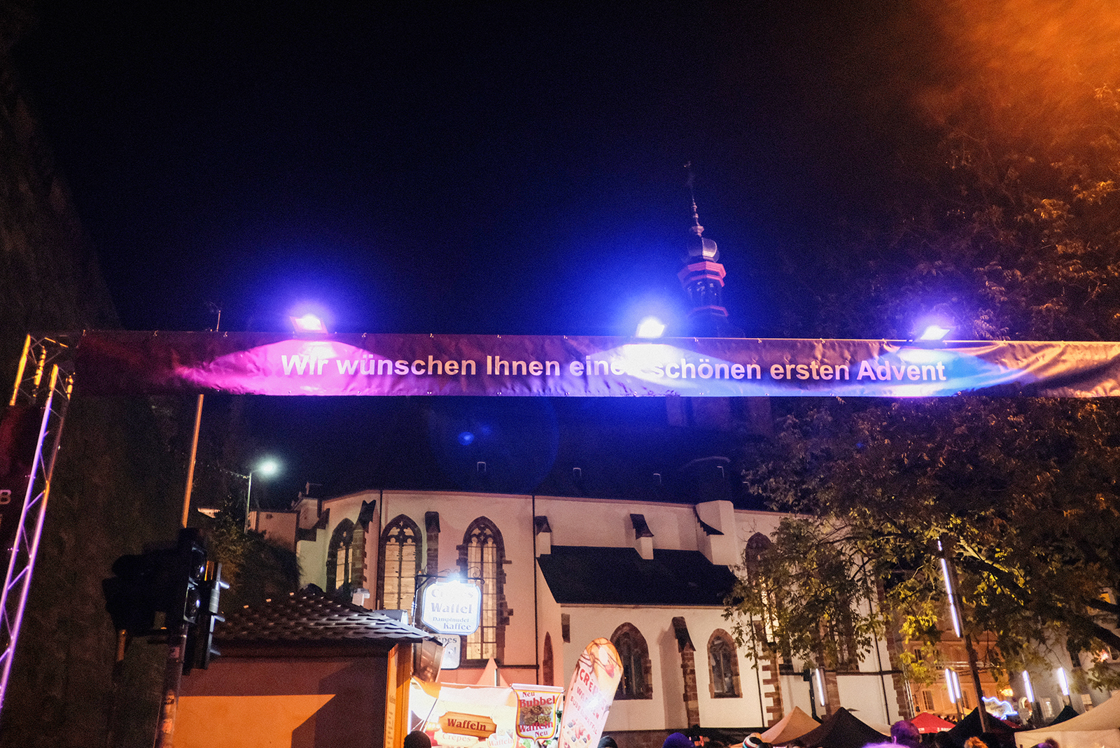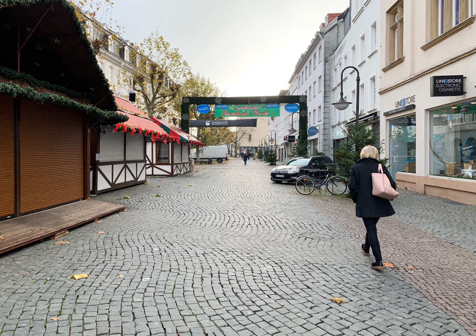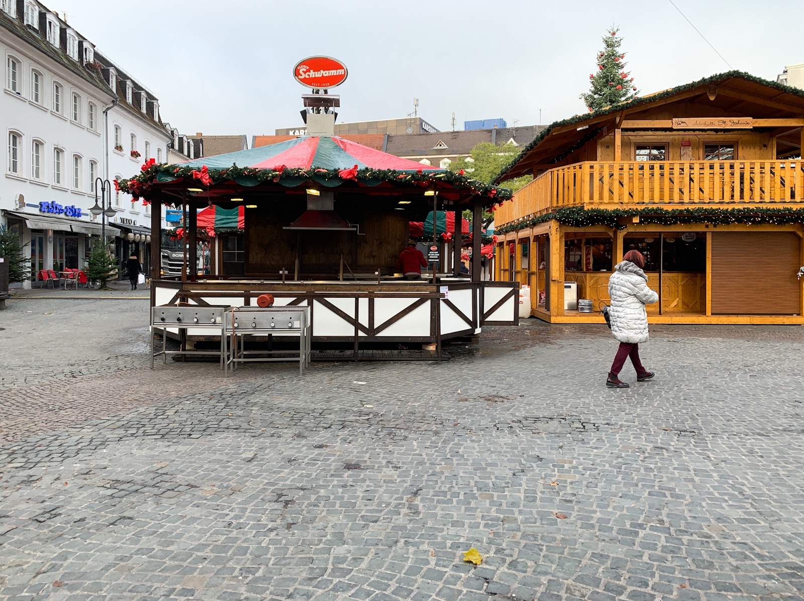 クリスマスまでの4回の土日を含む期間はアドヴェントと呼ばれますが、その第一アドヴェントの土日に、アルト・ザールブリュッケン地区のクリスマスマルクトが開催されます。毎年2日間だけですが、出店数が200を超え、規模が大きなものとなっています。ザールブリュッケン市内のクリスマスマルクトは出店数が100以下なので、単純に倍以上です。というわけで今年で45回目の開催となるアルト・ザールブリュッケン地区のクリスマスマルクトを訪れました。まず最初に気付いたのは例年ならば置かれている装飾がなく、下の入り口周辺にはお店が一軒もないということ。規模が小さくなったのでしょうか。しかしそれでも人が多く賑わっています。私は今日は何も食べず飲まずで歩いただけですが、その雰囲気を楽しめました。