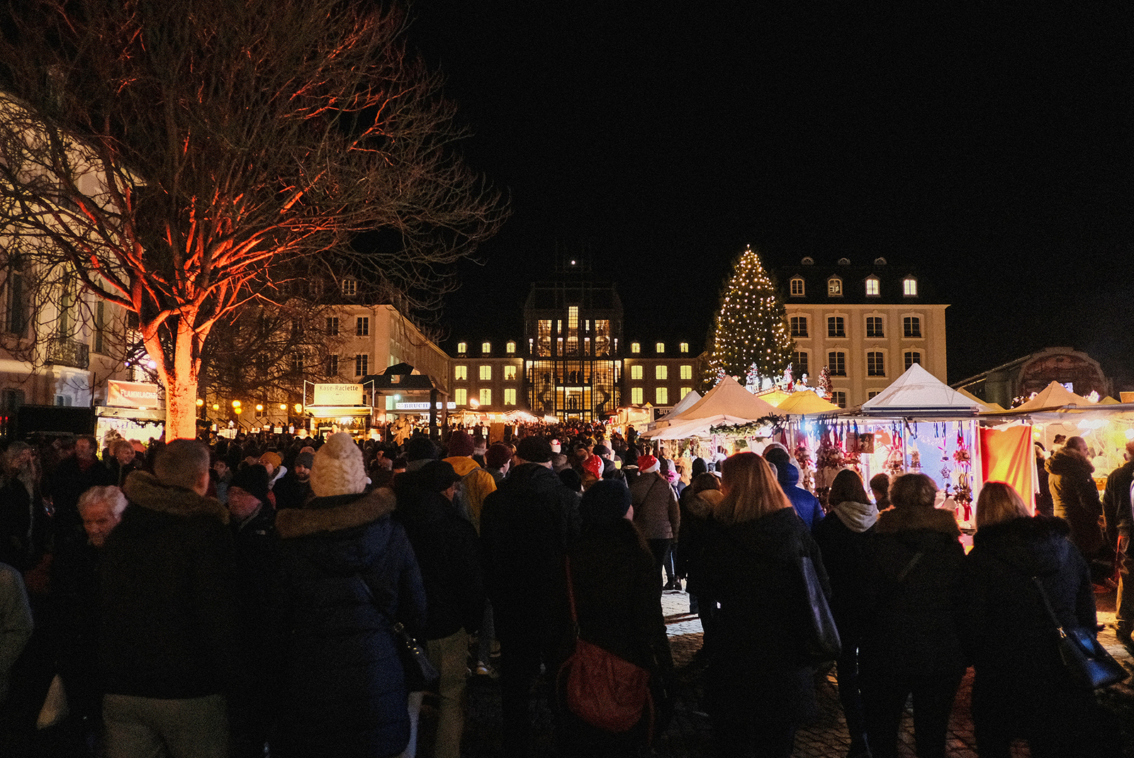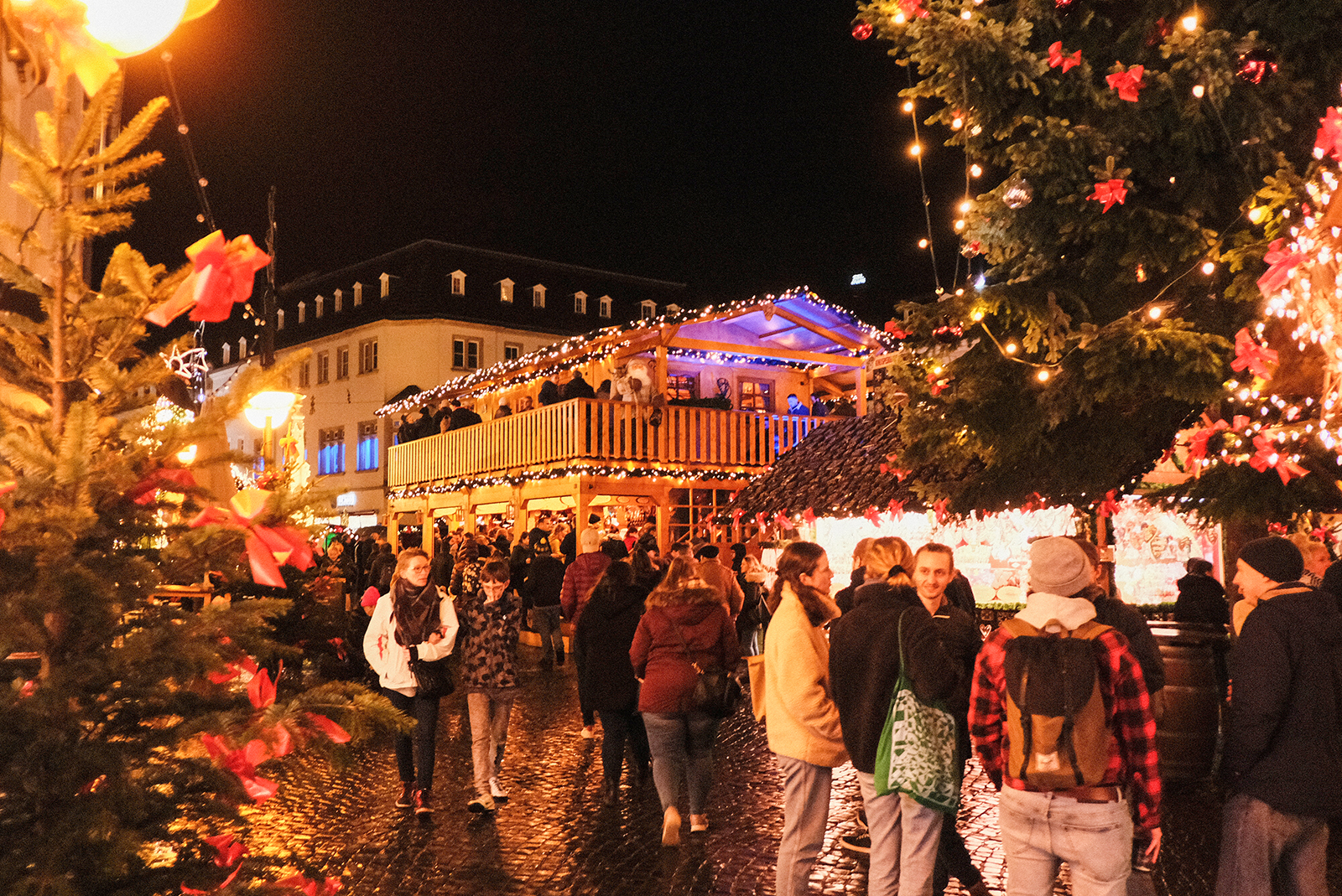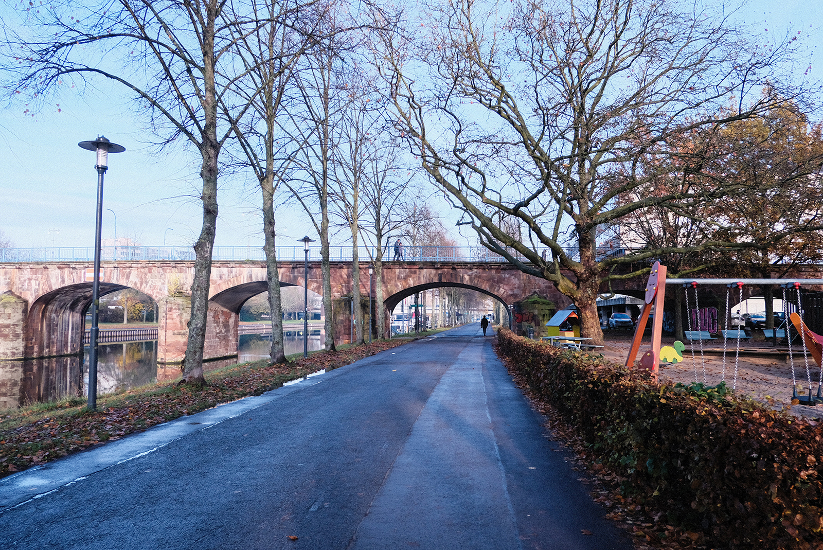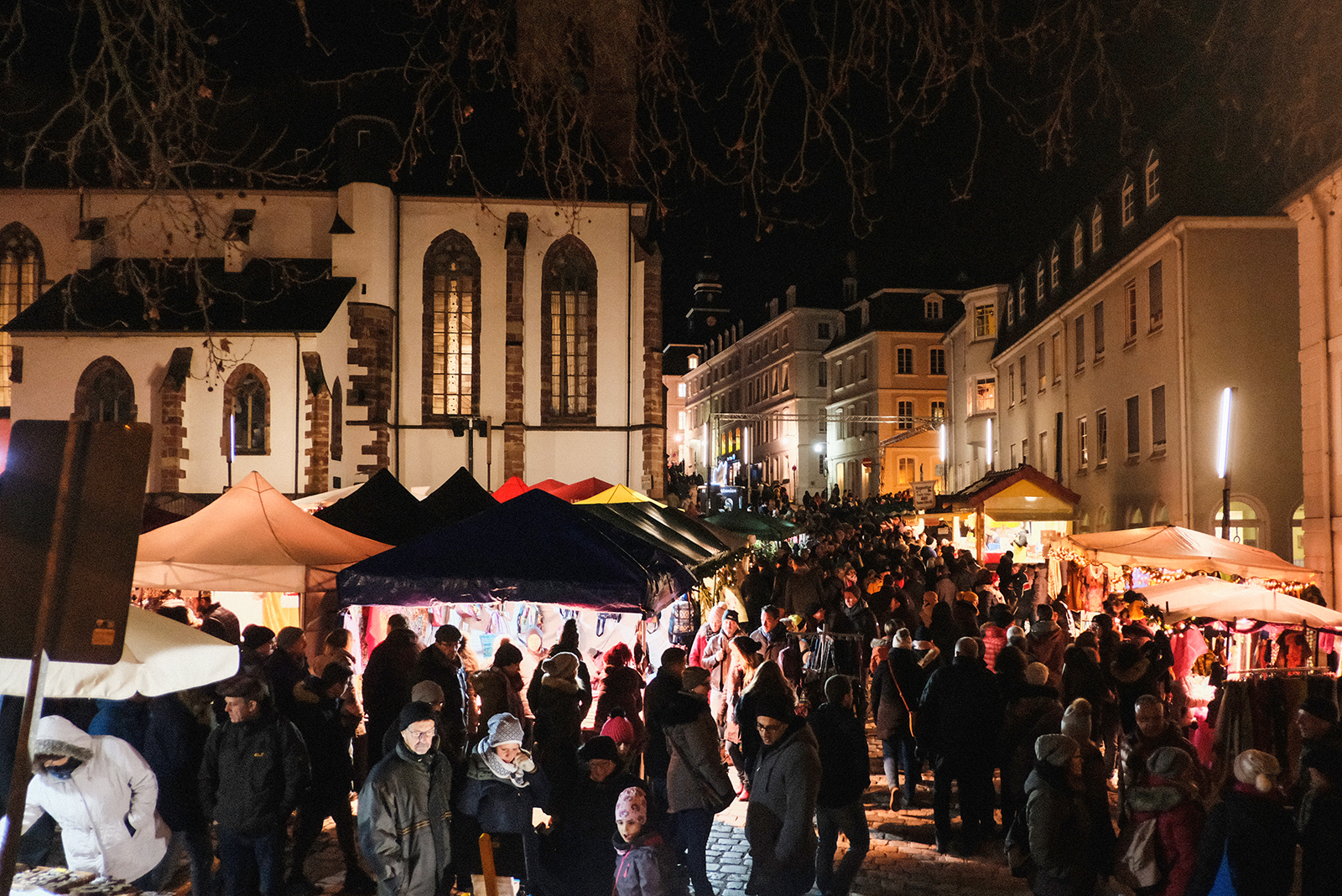 クリスマスまでの4回の土日を含む期間はアドヴェントと呼ばれますが、その第一アドヴェントの土日に、アルト・ザールブリュッケン地区のクリスマスマルクトが開催されます。毎年2日間だけですが、出店数が200を超え、規模が大きなものとなっています。ザールブリュッケン市内のクリスマスマルクトは出店数が100以下なので、単純に倍以上です。というわけで今年で45回目の開催となるアルト・ザールブリュッケン地区のクリスマスマルクトを訪れました。まず最初に気付いたのは例年ならば置かれている装飾がなく、下の入り口周辺にはお店が一軒もないということ。規模が小さくなったのでしょうか。しかしそれでも人が多く賑わっています。私は今日は何も食べず飲まずで歩いただけですが、その雰囲気を楽しめました。