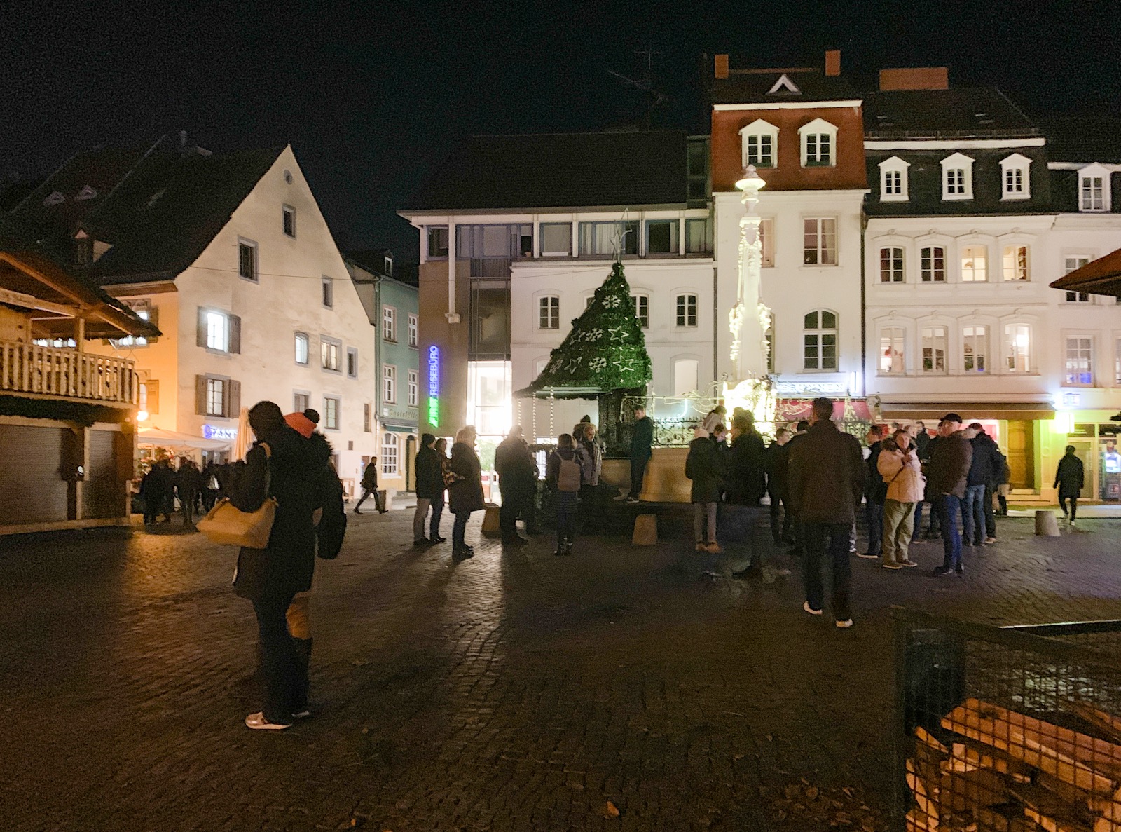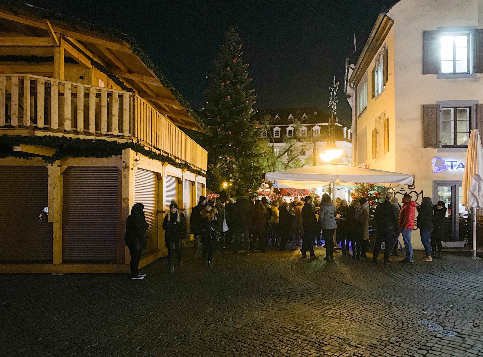 11月の第3木曜日がボジョレーヌーヴォーの解禁日で夜には街の中心に人が集まります。夜、その場所を通ってみるとレストランなどの前に人が集まっているのが見えました。ところでクリスマスマルクトの屋台が運び込まれるのは、その解禁日の後だと思っていましたが、自分の勘違いかもしれません。以前、解禁日の後だったので、そのように思っていたのか、それともそれを目にした年だけ後だったのか、真相は分かりませんが、今年は25日からクリスマスマルクトが始まることを考慮すると、今年の解禁日21日のあとから準備していたのでは、時間的に厳しいものがあるかもしれません。