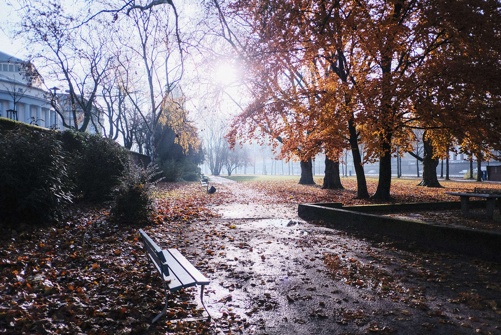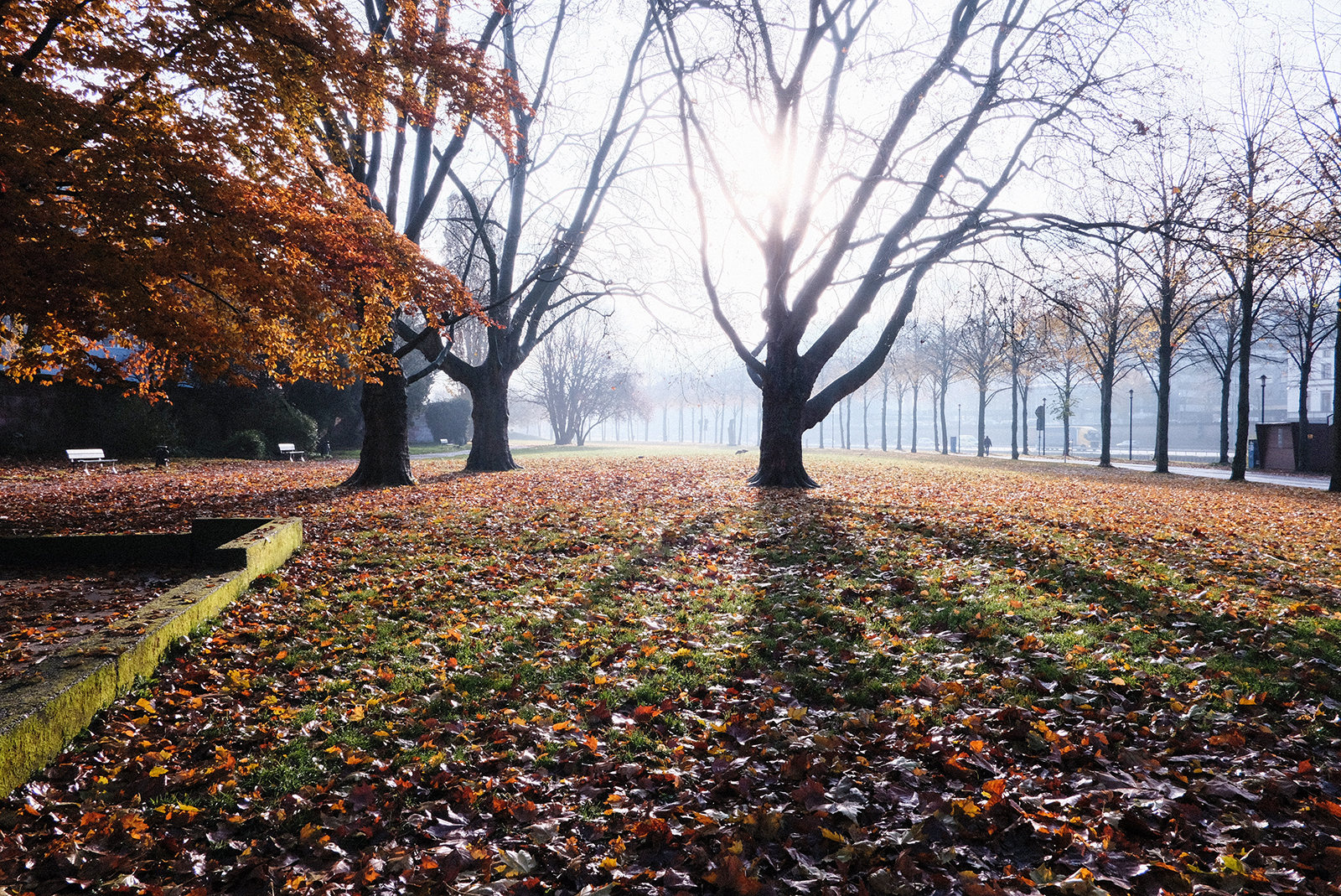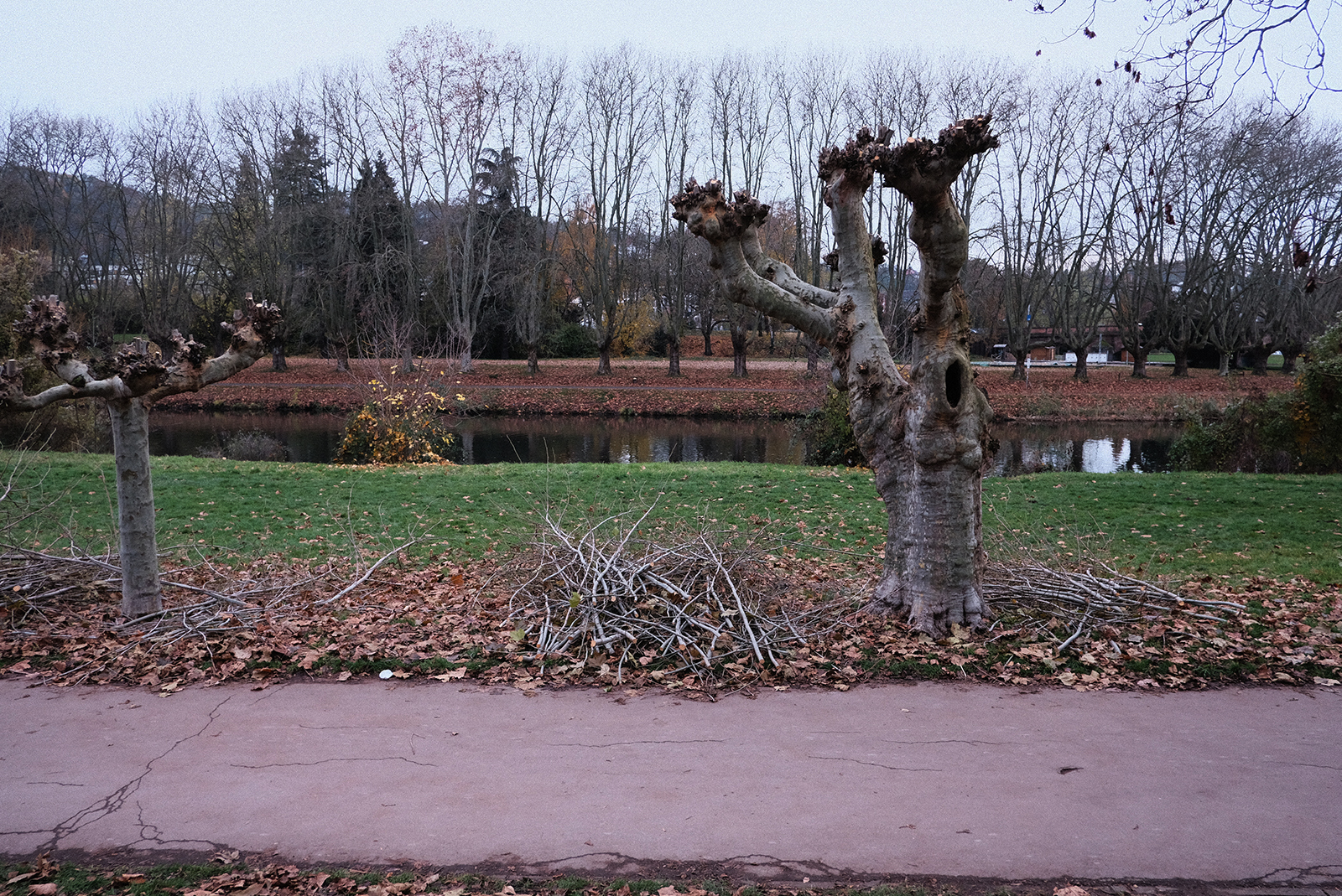 枝が切り落とされているのを目にすると冬支度が始まっているように感じられます。しかし街中ではクリスマスマルクトも始まったので、既に季節は冬で、ここでは秋の名残といった方が良いのかもしれません。