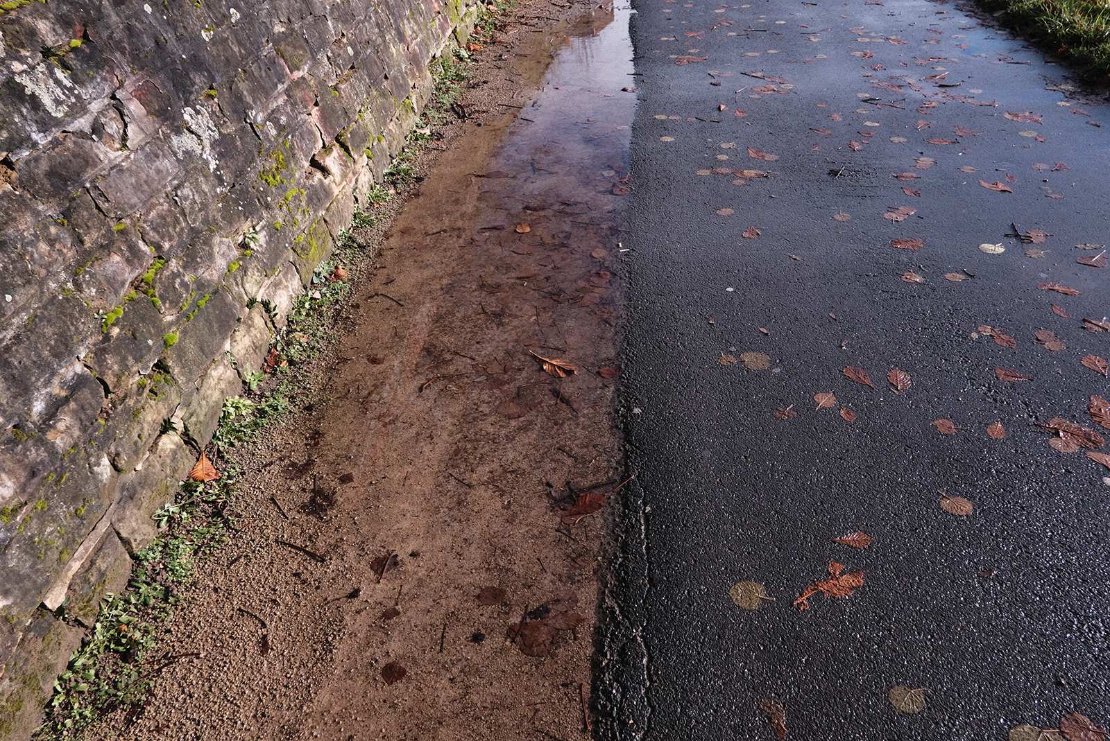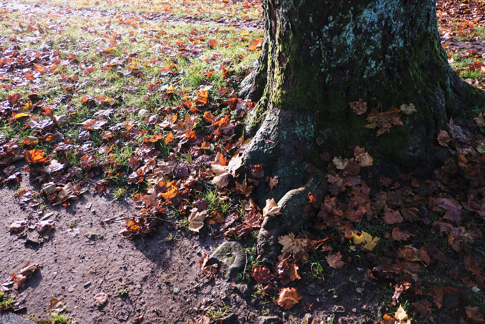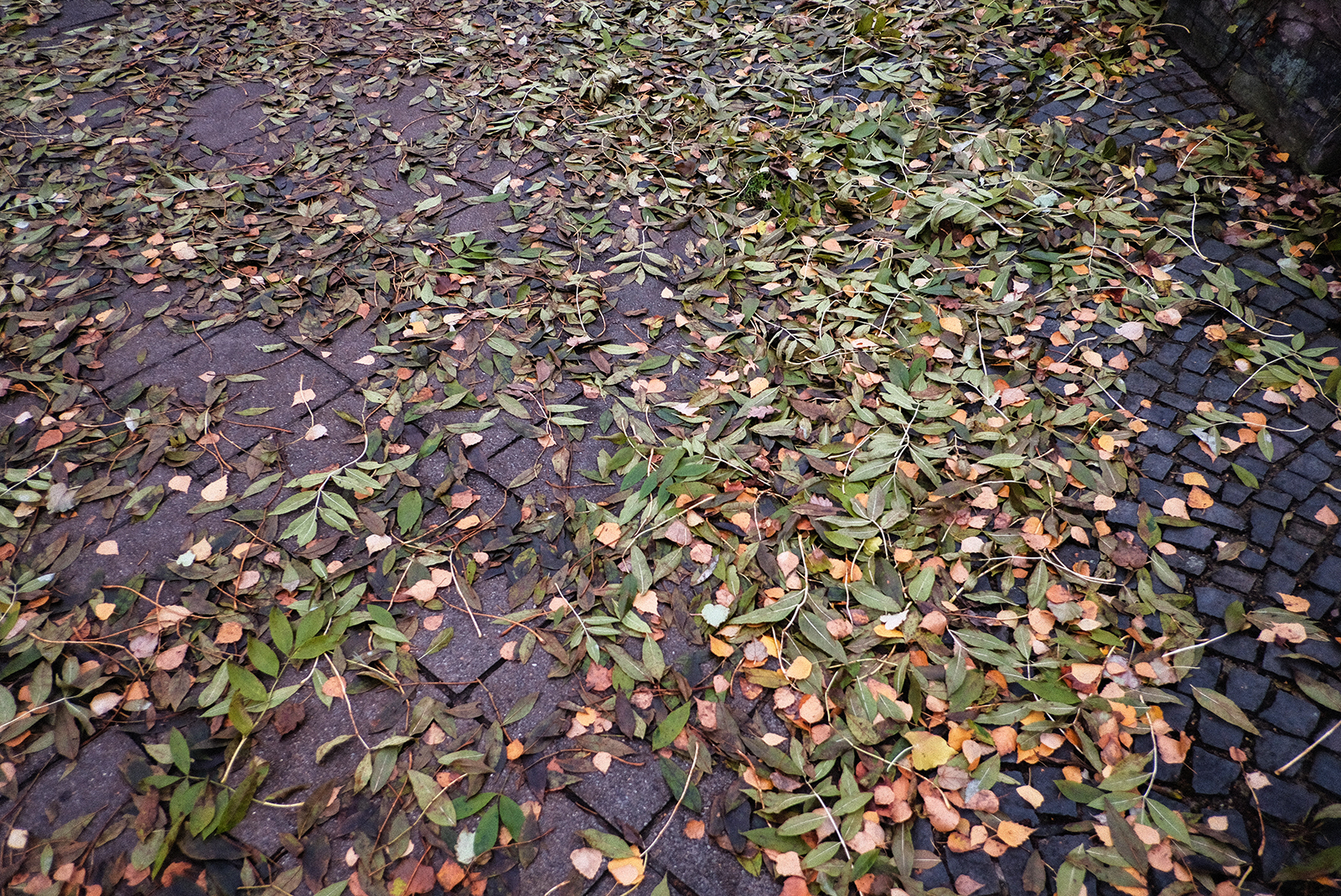 地面が濡れており、葉っぱも散っており、綺麗な風景ではありませんが、非常に美しい世界です。「うわ~、すごいなぁ、いいなぁ~」と感じながら写真を撮っていました。なぜだか非常にありがたい気持ちです。美しい世界です。