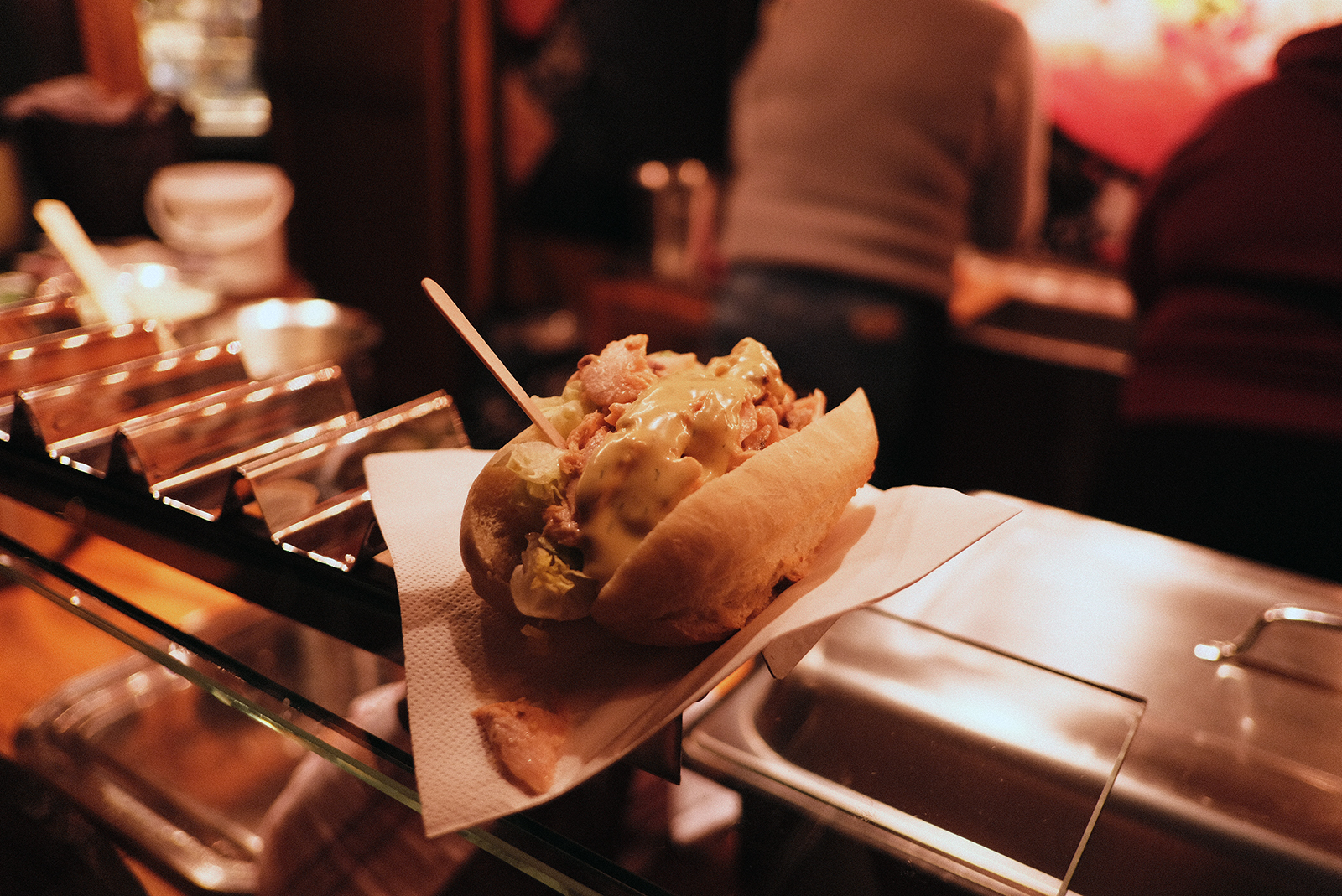 石畳が雨で濡れて、そこに光が反射して綺麗です。ホワイトバランスを合わせて撮ることも可能ですが、暖色の雰囲気を撮りたかったので、このような撮り方になりました。