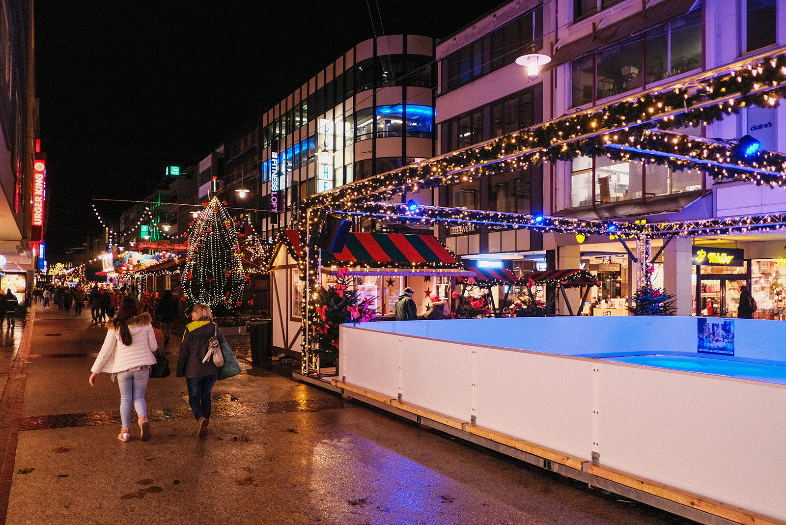 25日から始まったクリスマスマルクト、今年初めて訪れました。気温が10度近くあって過ごしやすいのですが、風が強く、時々雨が降っています。その天候で人も多くはありませんでした。回ってみると、例年と同じ場所に同じお店が出ていますが、今年初めてのお店も幾つかありました。小さなスケートリンクもあります。