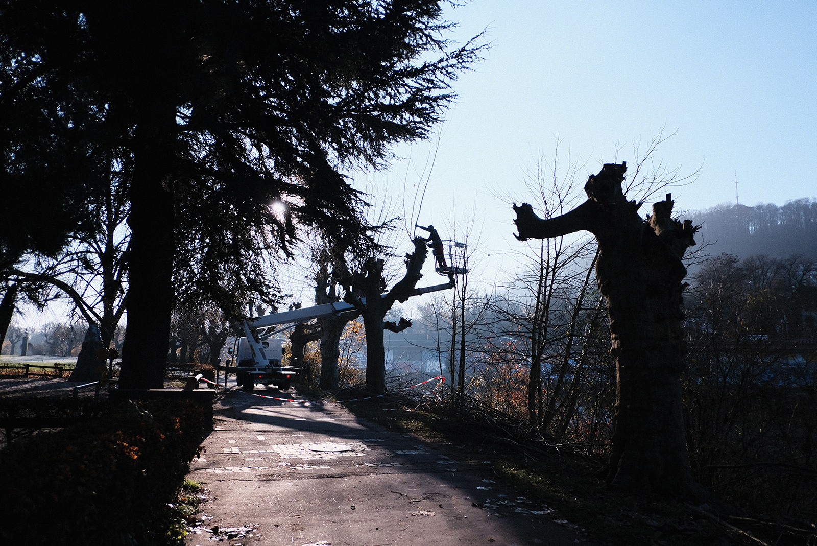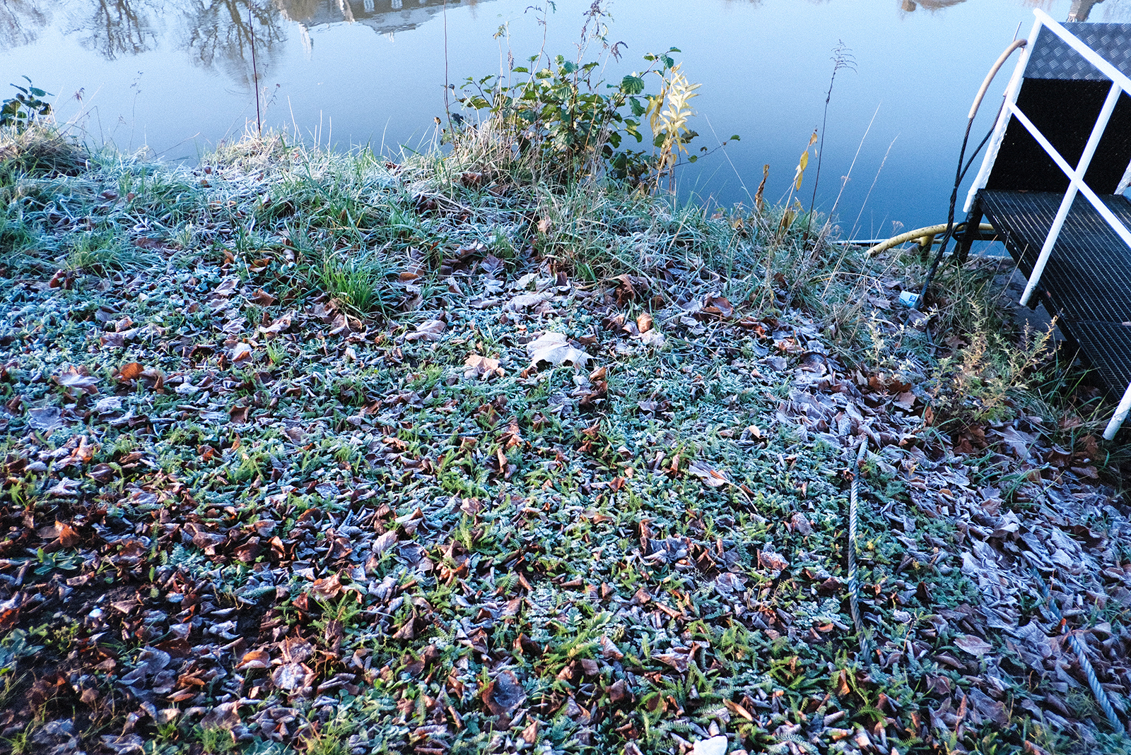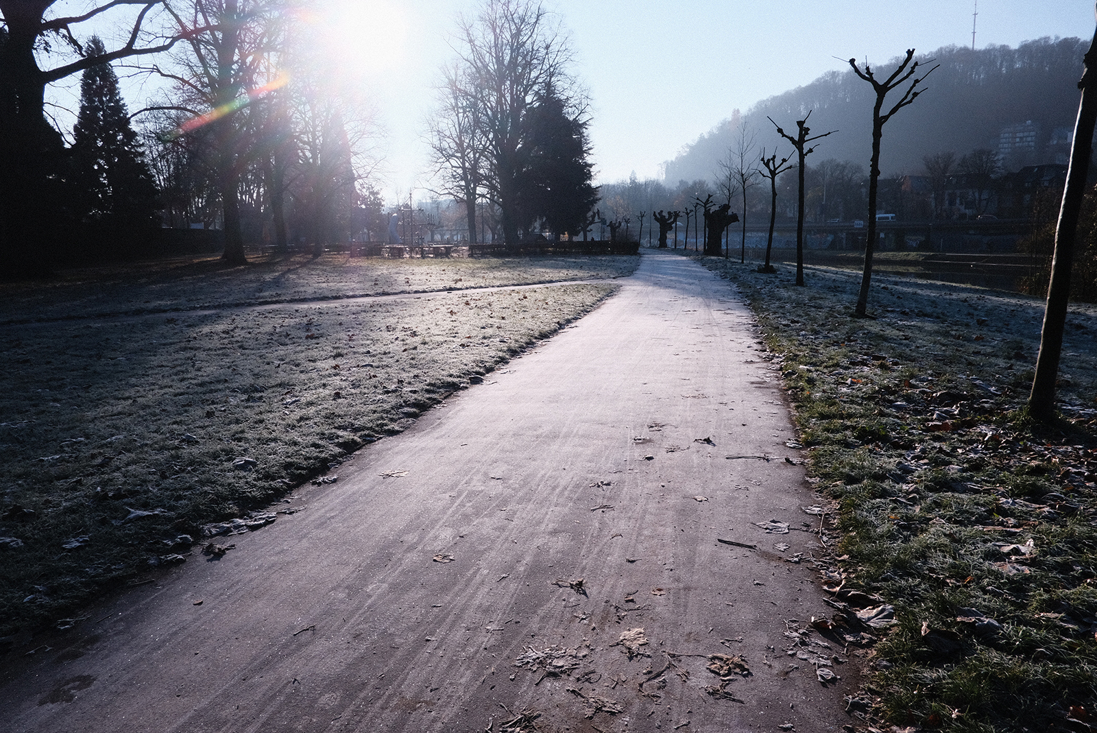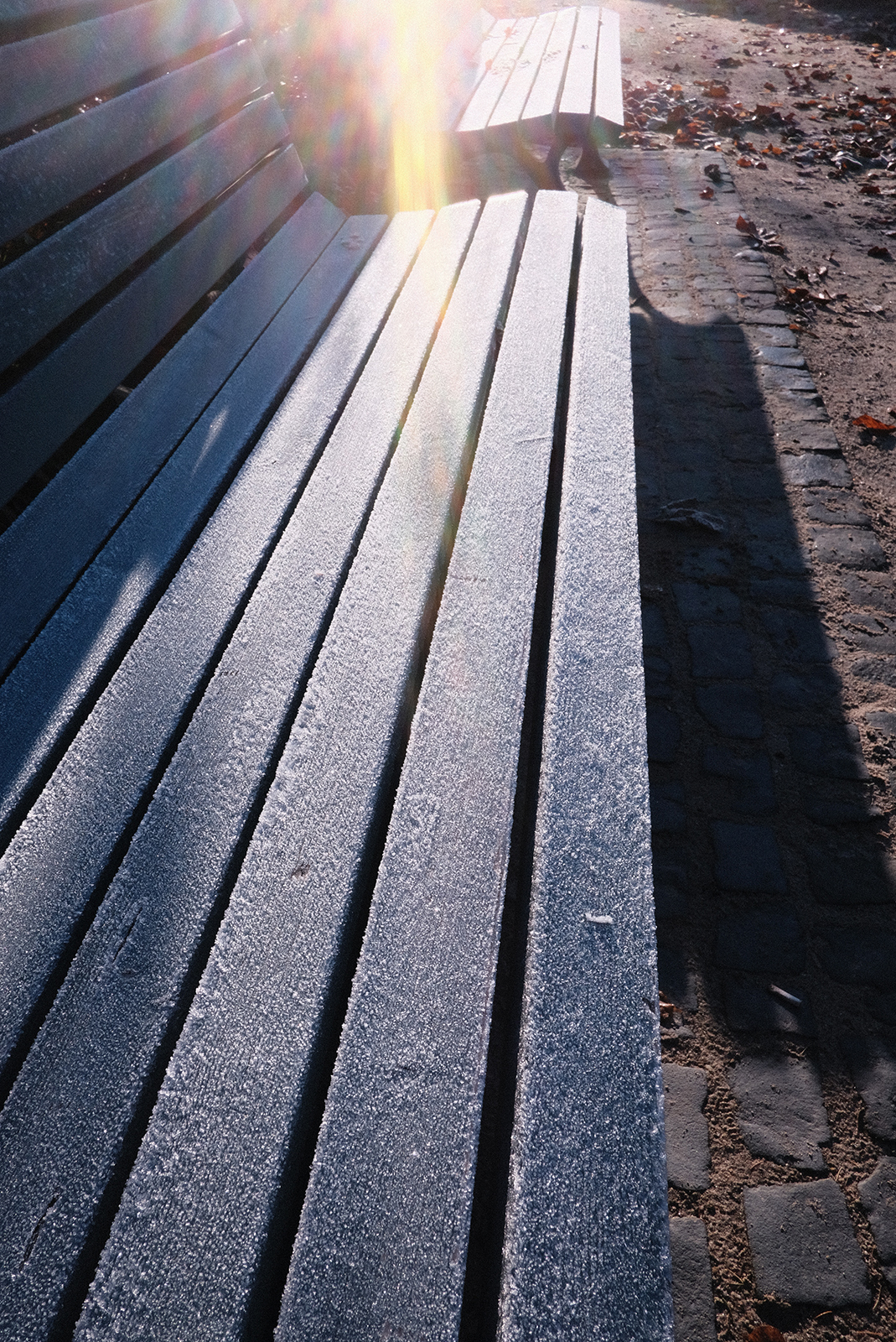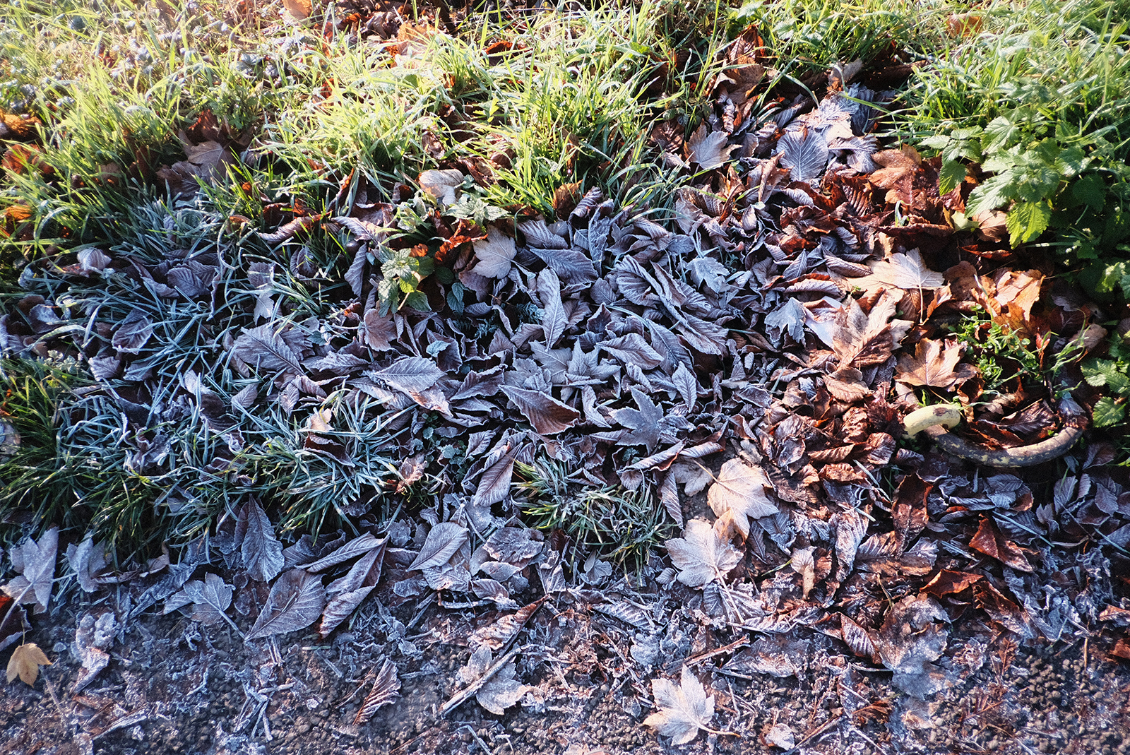 朝の気温は1度、体感温度は-3度となっていました。しかし外でもそこまでの寒さは感じられません。ただ外では霜が降りているので、その数字通り、冷えていたのかもしれません。光を受けて光る霜や真っ白になった場所、その中で作業する人、画になる朝の光景です。