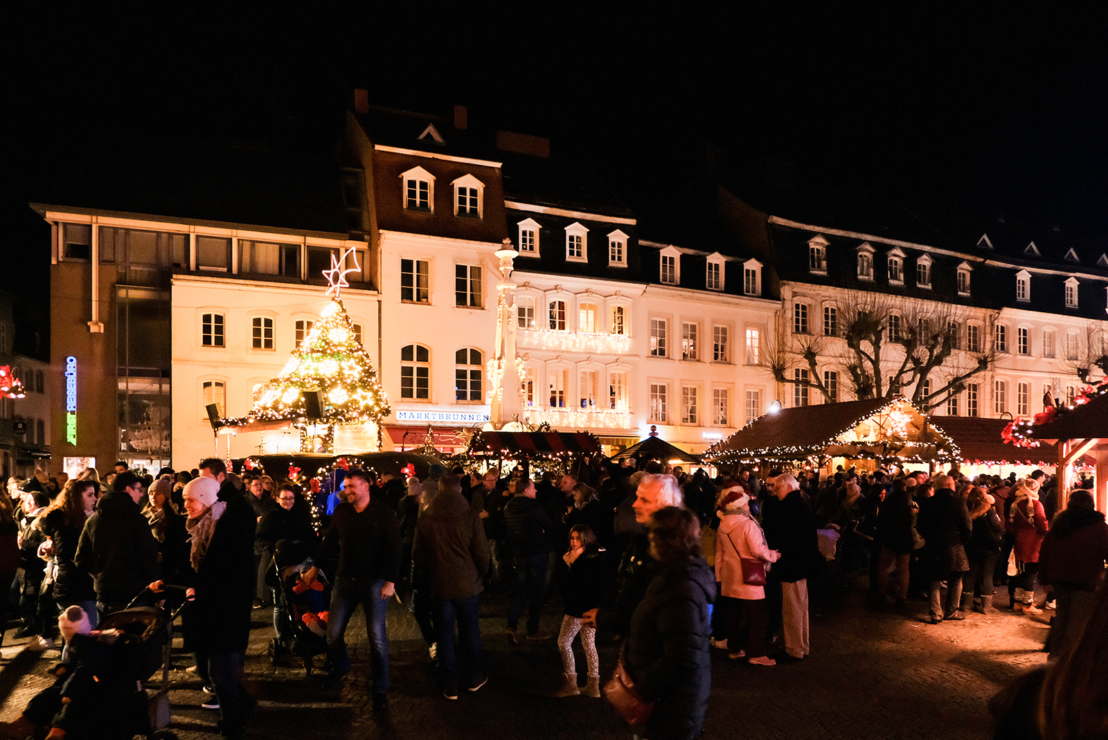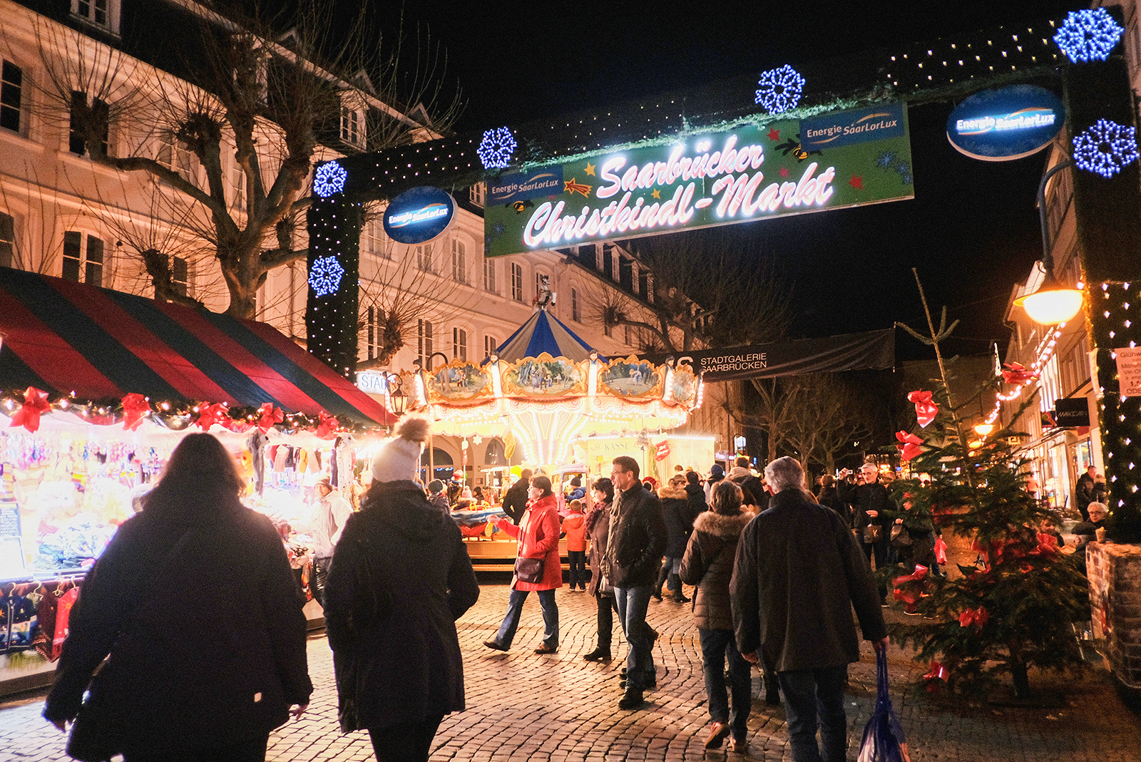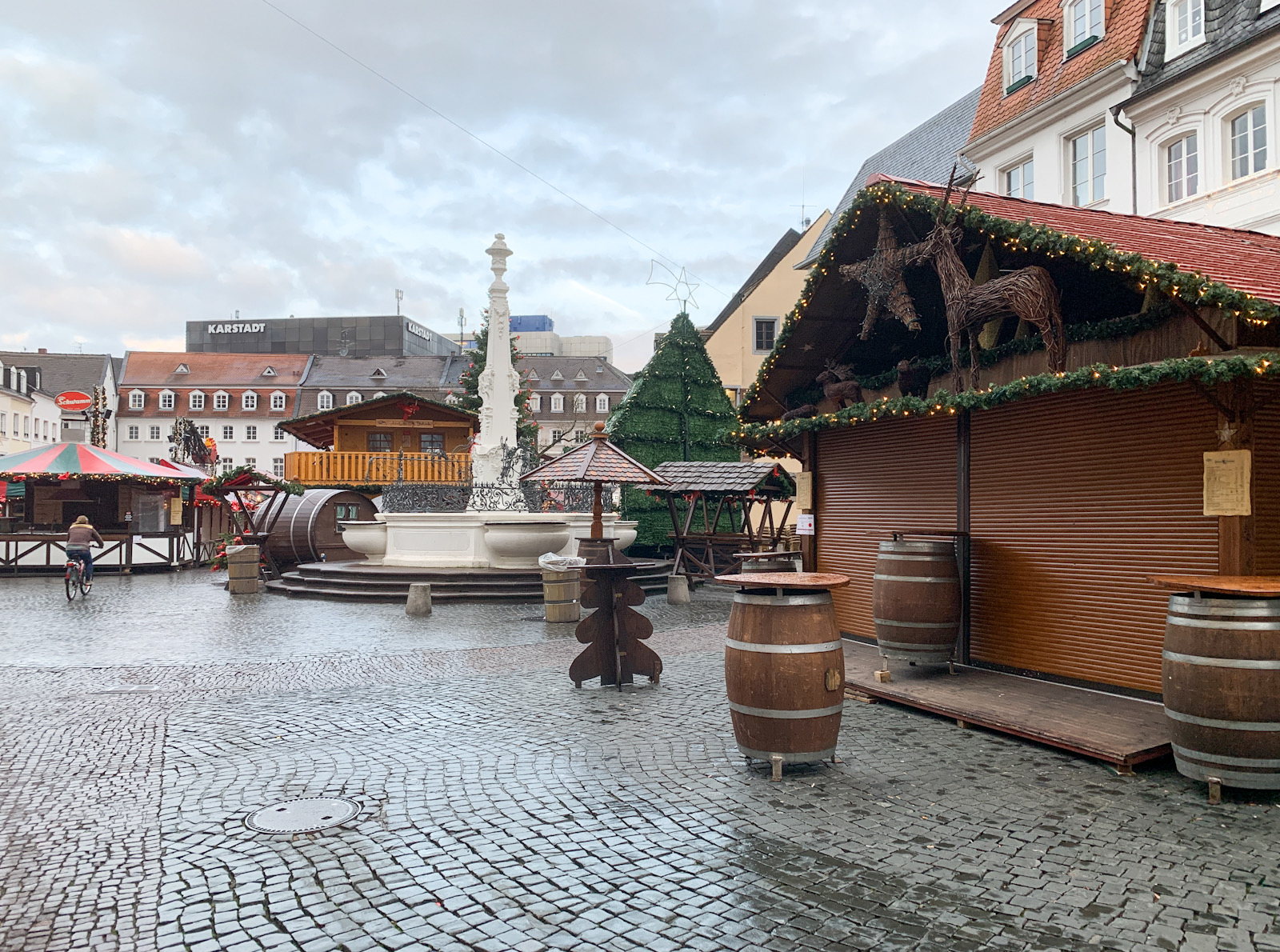最高気温は10度と非常に暖かいです。しかし時折、強い雨が降っています。その雨の影響でザール川が増水し、横を走るアウトバーンが一時通行止めになりました。暖かい午後、クリスマスマルクトを訪れました。多くの人で賑わっています。