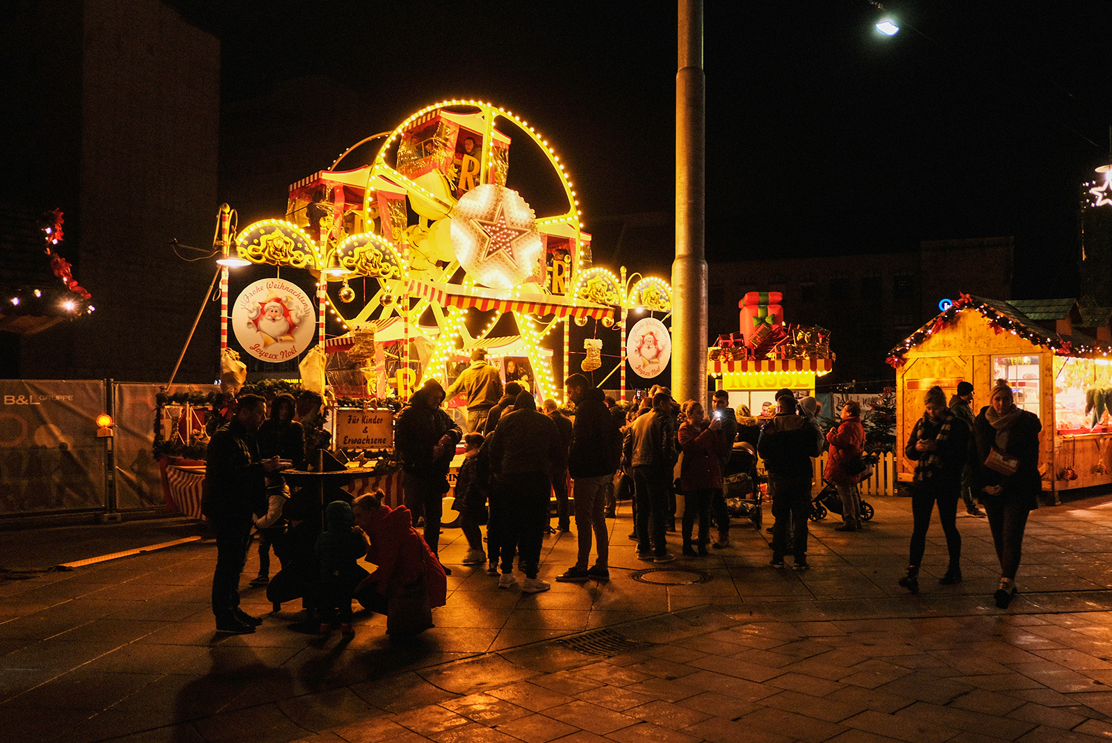 今年のクリスマスマルクト開催期間中は雨の日が多く、それほど訪れることはできませんでした。光源とボケを使った写真を撮りたいと何度か撮りに行きましたが、色々な条件があわず納得できる写真は撮れませんでした。それでもクリスマスマルクト最終日を楽しく過ごせて良かったです。派手さはありませんが、「空飛ぶサンタクロース」をはじめ、大人も子供も楽しめる素朴なイベントというのがいいですね。