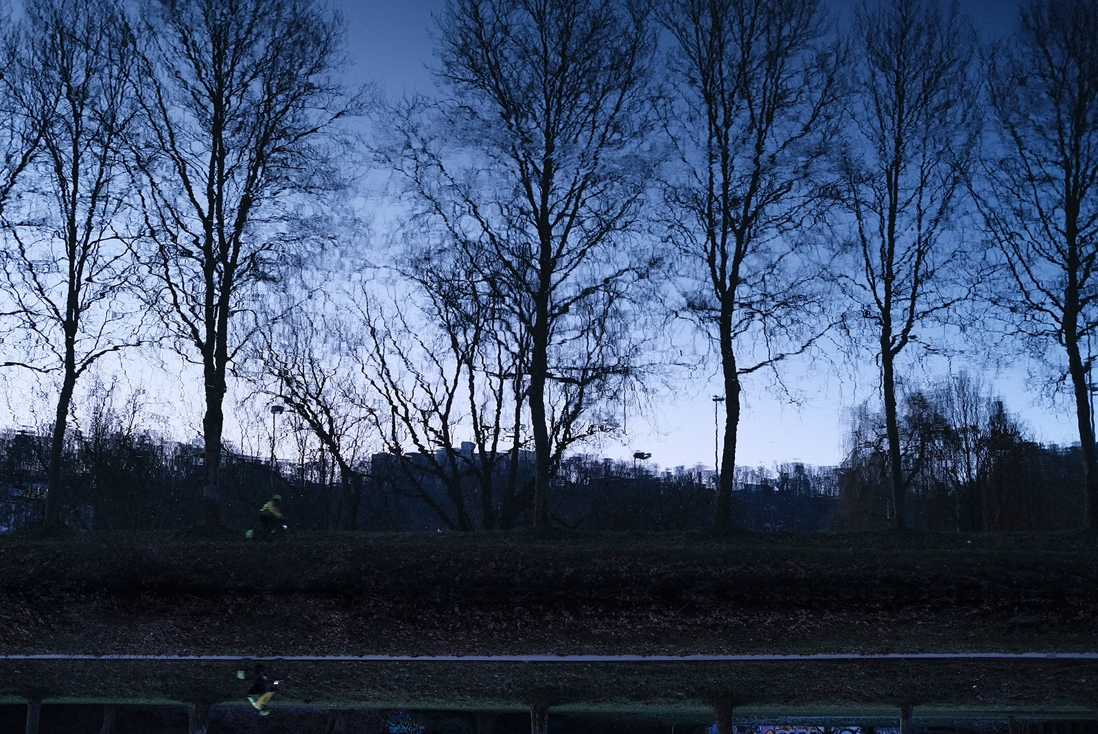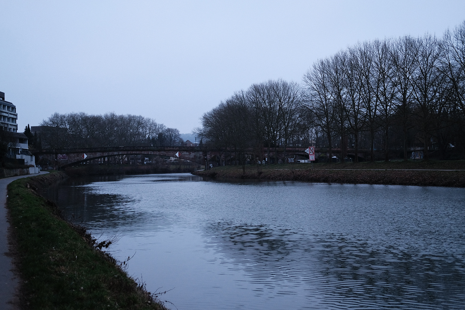 今日は氷点下になる寒い一日でした。ザール川は非常に穏やかで綺麗な水鏡になっています。次の2枚はどちらも180度回転させたものですが、そのことを知らなければ、普通に撮った写真のようにも見えます。どちらも水面に映った風景です。