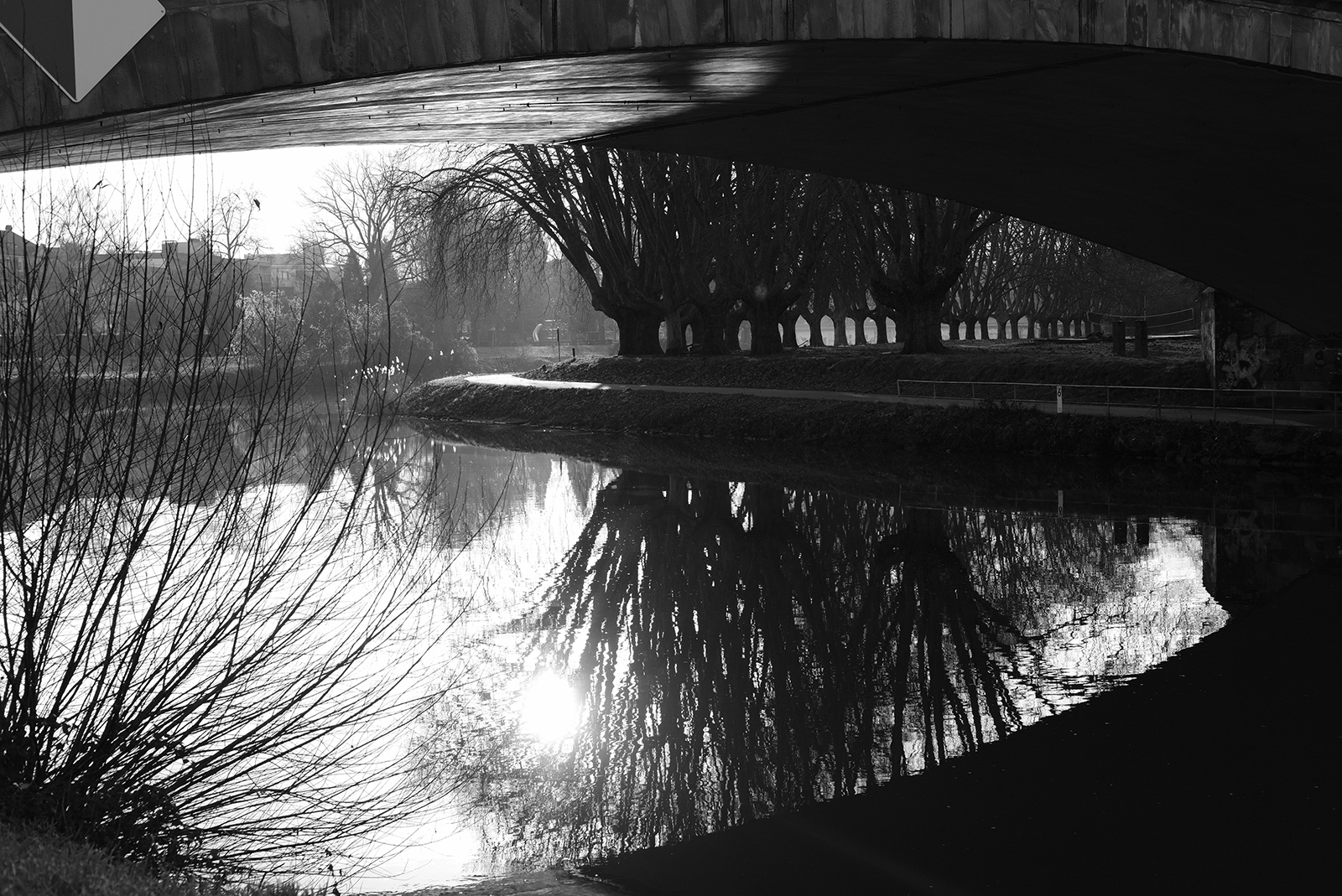 ザールブリュッケンの街角 眩しい朝 by ey 2020年1月16日 今朝も天気が良く、自分の影がまるで夕方の時のように長く伸びていました。そして非常に眩しい太陽があります。ファインダーを覗いて撮った後にカメラから目を離すと、暫く何も見えないような感覚になります。