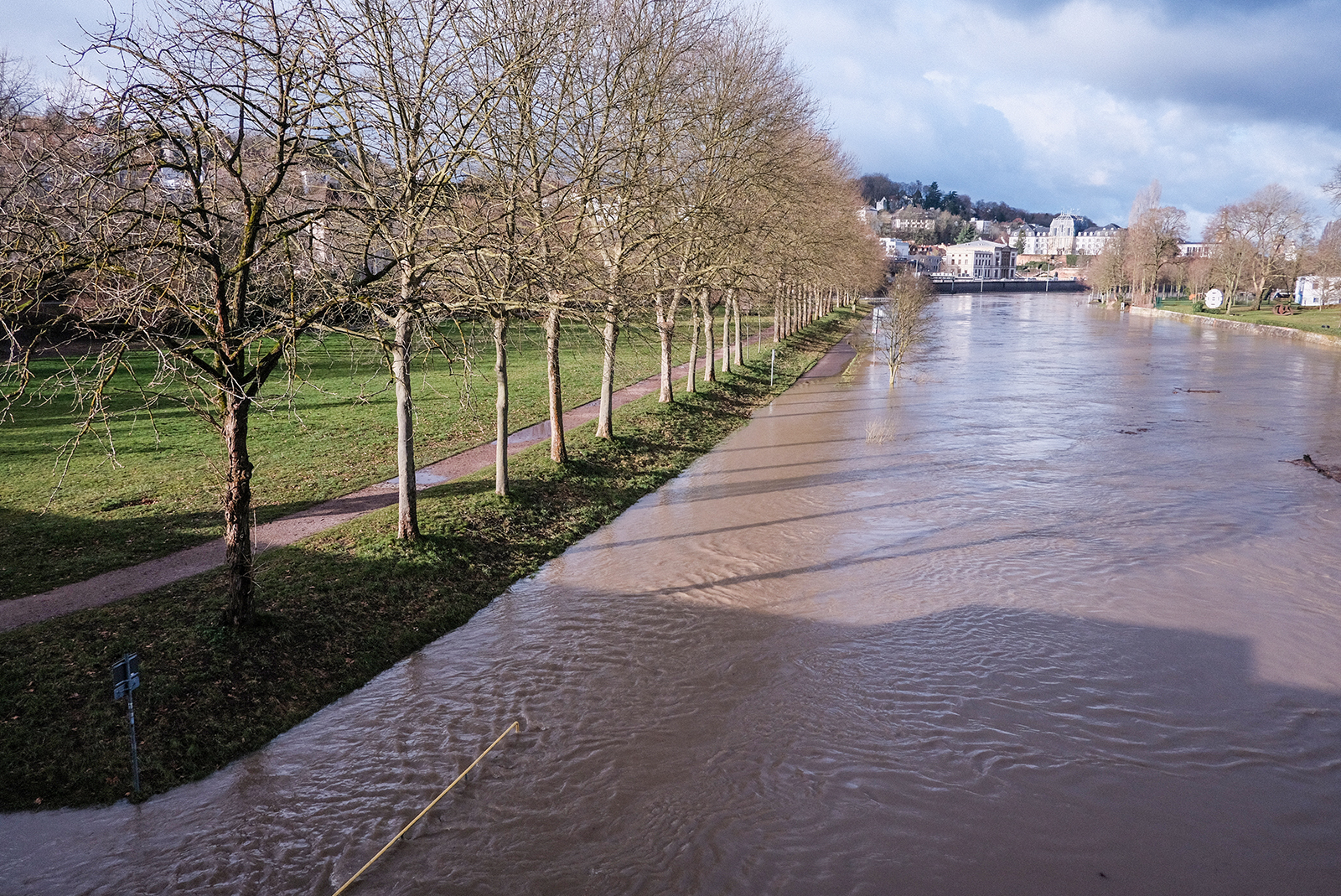 数年前にもザール川が増水し、アウトバーンが冠水して通行止めになりました。水が引いたアウトバーンは泥だらけだった記憶があります。街中に水が流れ込まないよう川の流れも整備されていますが、それを超える増水がまだあるということ。自然の脅威が感じられます。