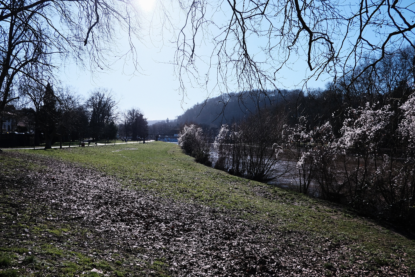 通行止めは解除されています。こちらでも草の上を歩いている人が。