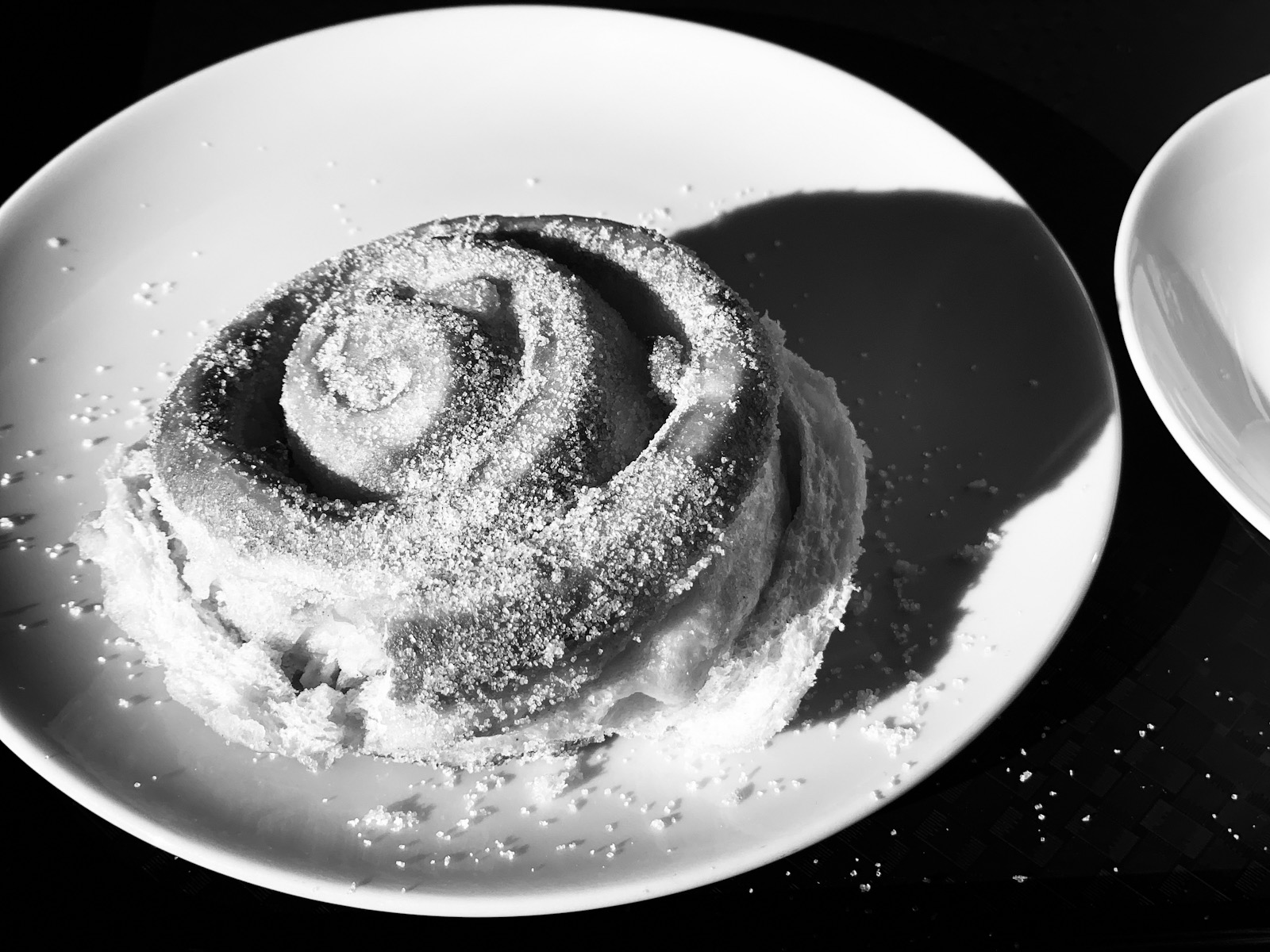食べている途中のものですが、光と影が綺麗でまるで宇宙のように見えたので撮ってみました。食べ物の場合、私は記録を兼ねて食べる前に撮って、食べている途中のものは、あまり美しくないのと人的なものが強く感じられるので写真に撮りません。しかしあえて撮る必要があるならば、コントラストが高いモノクロにすると人臭さを消せるかもしれません。