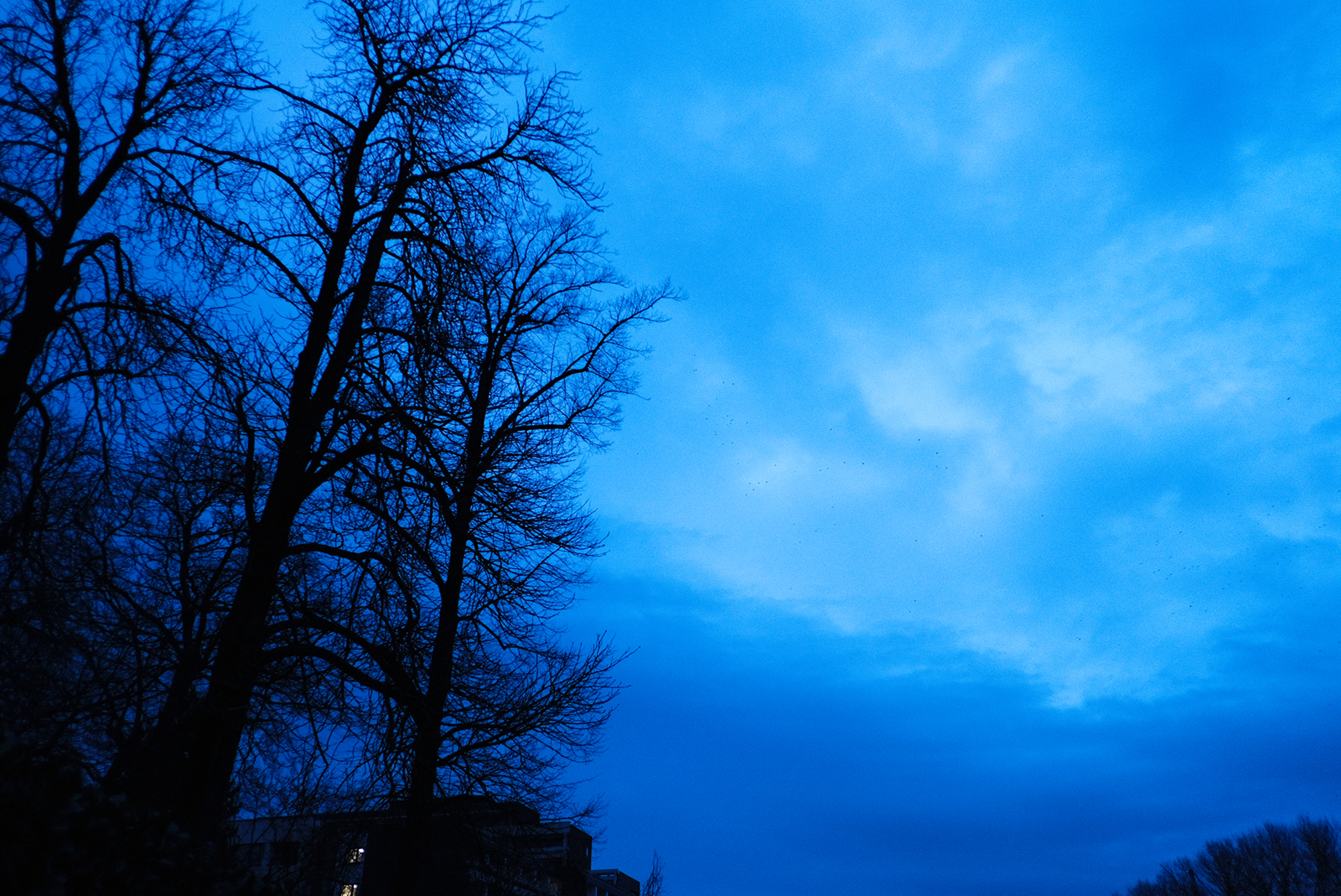 辺りは暗くなっていても空にはまだ明るさが残っています。この夕方と夜の境目の時間は短く、空の色の変化も早いです。その僅かな時間を意識して撮影する際はカメラの設定も少しずつ変更しますが、自身の意識が自然と同調しているようで楽しさがあります。
