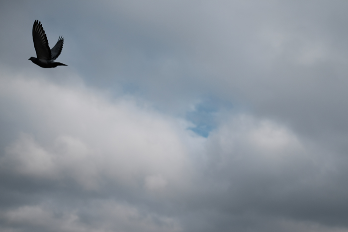 一羽の鳩が前を横切って飛んでいったので慌ててカメラを向けましたが、ぎりぎり画面の隅で捉えてくれました。