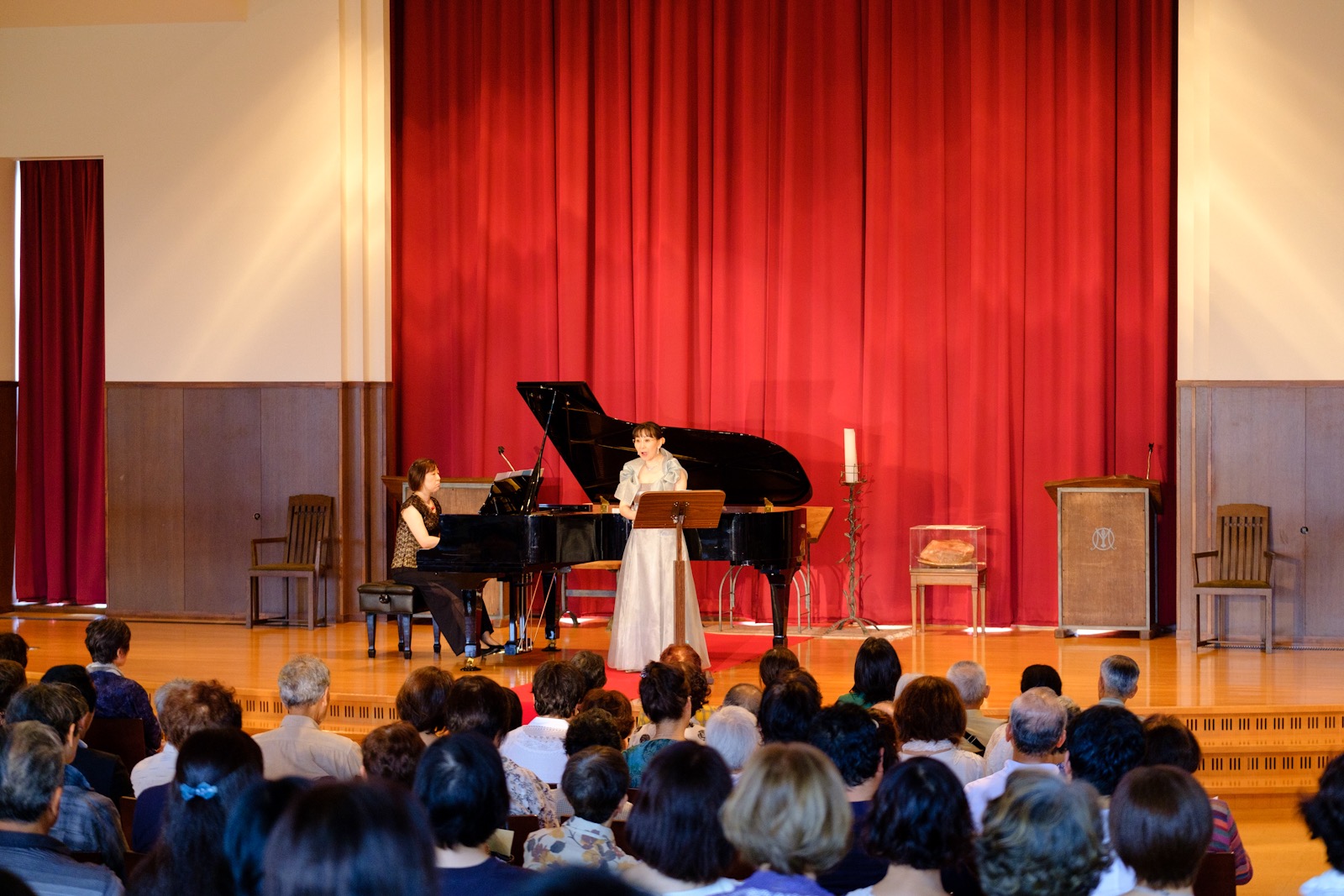ヴォーリズ学園ヴォーリズ平和礼拝堂での「山本のりこソプラノリサイタル」(ヴォーリズ学園同窓会共催、ピアノ湯浅聡子)にご来場いただいた皆様、どうもありがとうございます。そして色々な面で様々なサポートしていただいた皆様、どうもありがとうございます。おかげさまで良いリサイタルとなりました。写真展の方にもたくさんの方にご来場いただき、どうもありがとうございました。