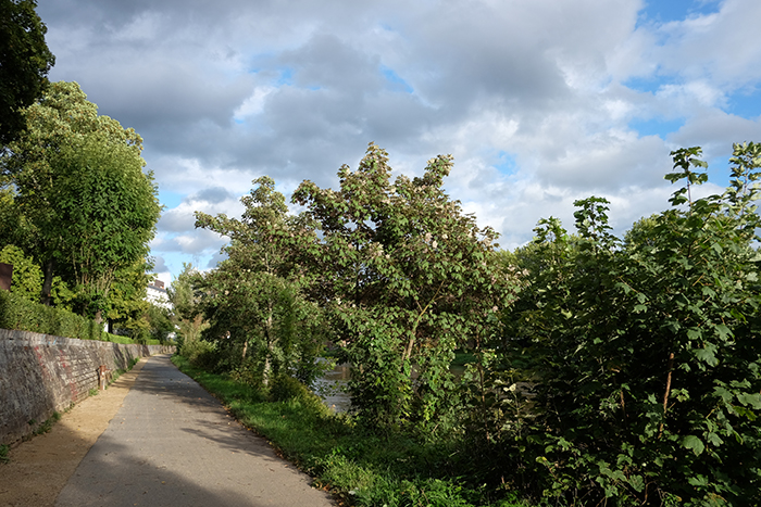 ここ最近は気温が10度から15度くらいの少し寒い日が続いています。午前中の撮影からの帰り、いつものようにザール川沿いを通りました。ほぼ毎日、ここを歩いています。