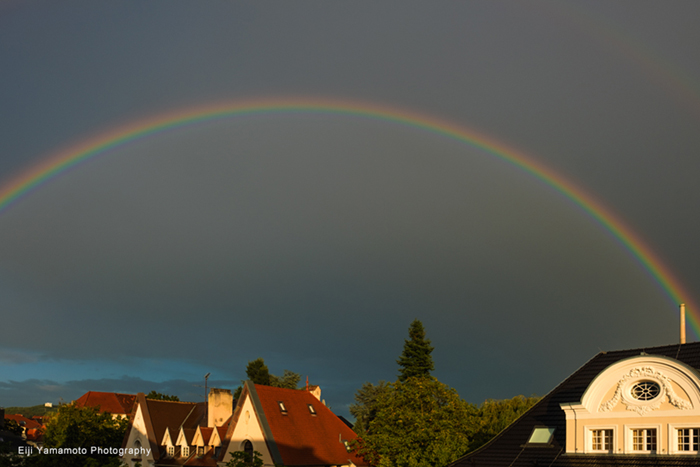 午後は時々雨。作品作りでモニタに向かっていると、外が急に明るくなりました。雨の中で晴れ間が出ています。そして暫くすると大きな虹が見えました。昨年秋まで住んでいた家では方角的に虹がよく見えましたが、今の家に引っ越ししてからほとんど見られなくなりました。久しぶりに見た虹です。