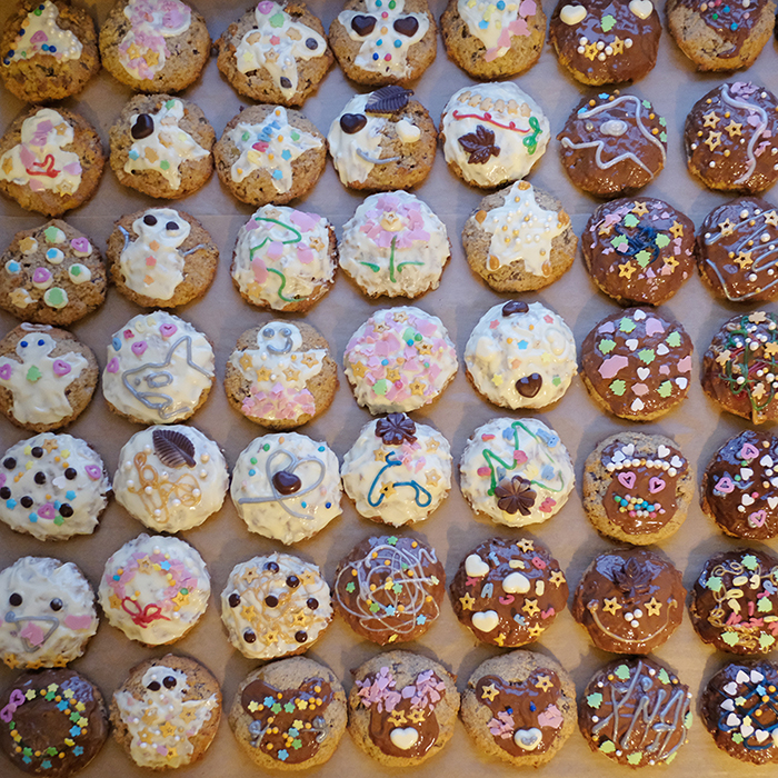 チョコレートコーティングされたレープクーヘンを飾り付けする際、いつも新鮮なアイデアがあって毎回驚かされます。作品作りにおいても、より感覚的に自由に、そして常識から意識してはみ出してみるのも面白いかもしれません。それを再認識した一日でした。それにしても楽しい一日でした。ありがとうございました。